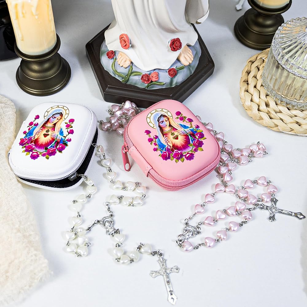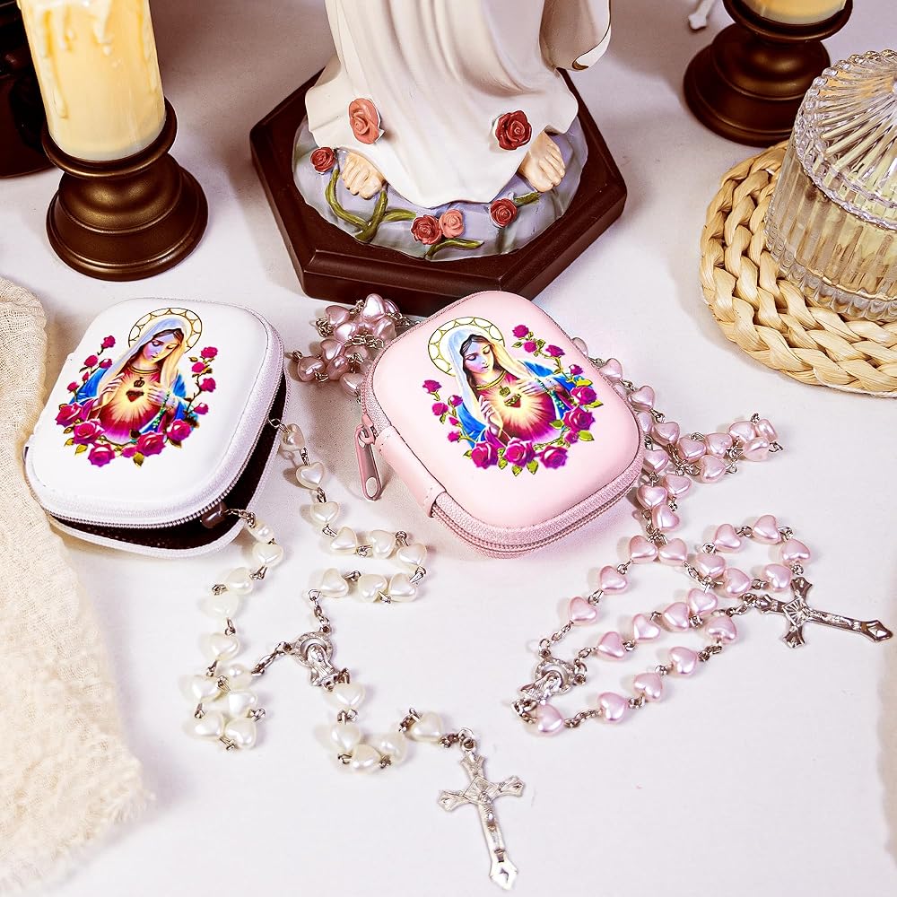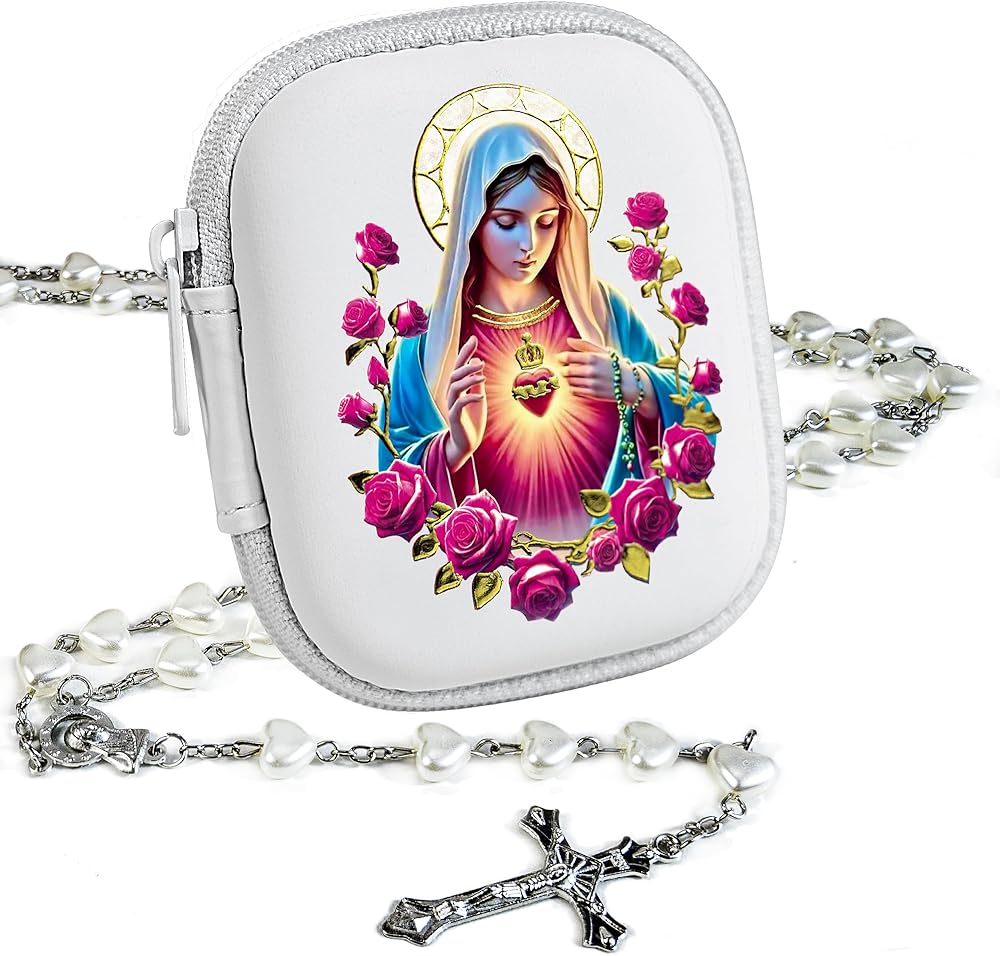 【صندوق صلاة مريم العذراء المحمولة】 تأتي هذه المسبحة الكاثوليكية في صندوق سحرة قوي مطبوع بصورة مريم العذراء - قم بإزالة الخرز من الغبار والتشابك أثناء السفر إلى الكنيسة أو التراجعات أو الصلاة اليومية. يضمن إغلاق الرمز البريدي الآمن أن تبقى المسبحة الخاصة بك آمنة.