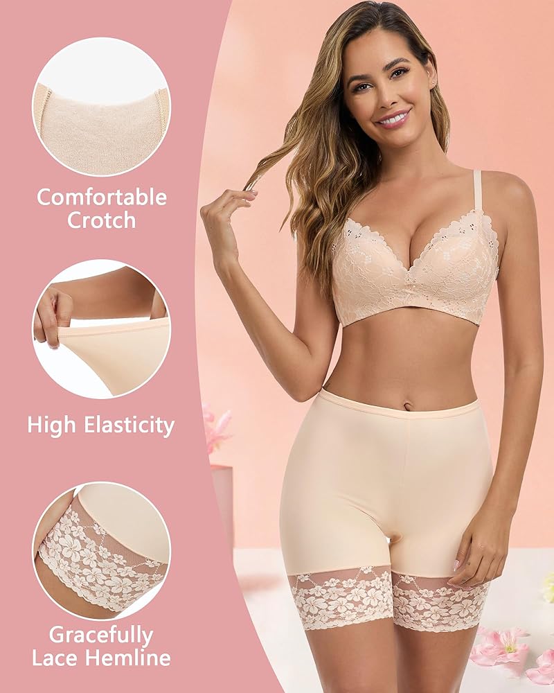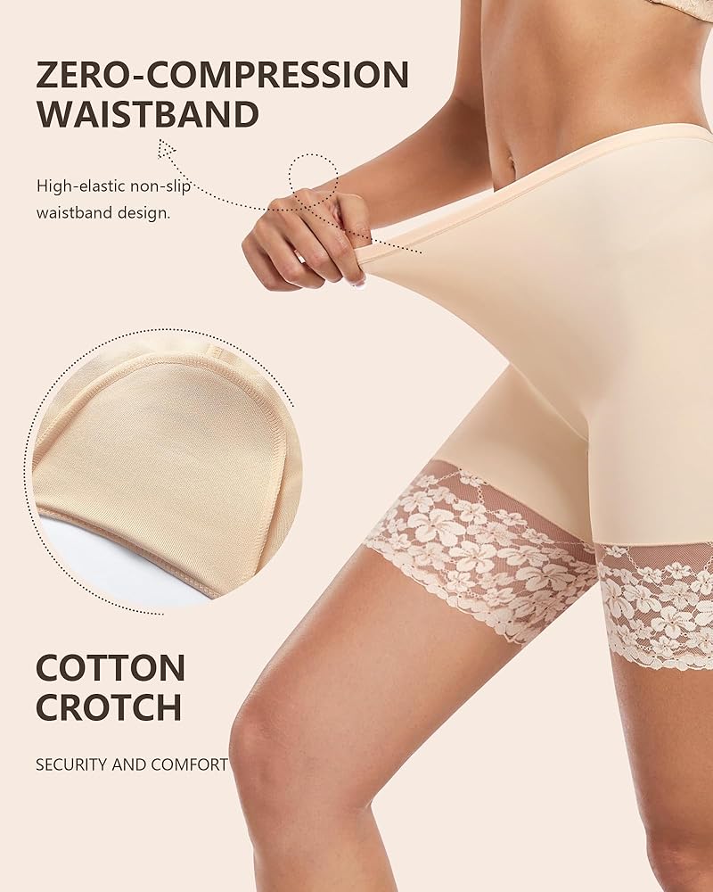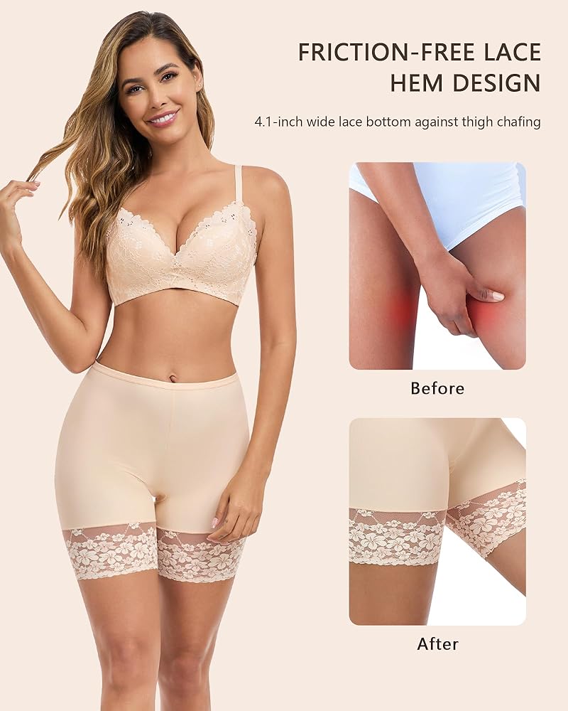 【تصميم تنحنح الدانتيل الخالي من الاحتكاك】: قاع الدانتيل العريض 4.1 بوصة ضد الغضب الفخذ ، والقطاعات المسطحة تمنع الخطوط المرئية تحت الفساتين الضيقة. يمنع النسيج الخفيف تهيج بدون مواد كيميائية ، مع الحفاظ على الساقين ناعمة. شورتات انزلاق مثالية لمكافحة الغضب للفساتين تحت الفساتين