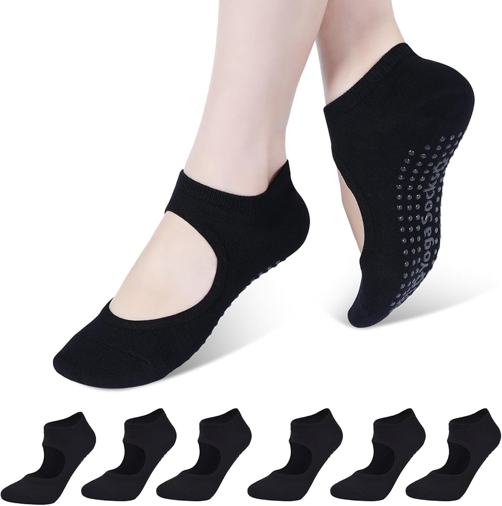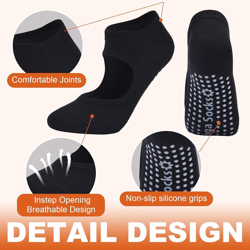 【Comfortable & Breathable Design】:We have opened the instep to make the grip socks breathable and more flexible.Elastic cuff avoid slipping down;Designed specifically for daily workouts,it features high moisture-wicking and breathable materials to keep your feet dry and minimize odor,even during intense activities.They fit women's shoes size 5-10.