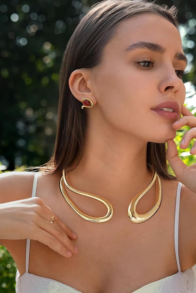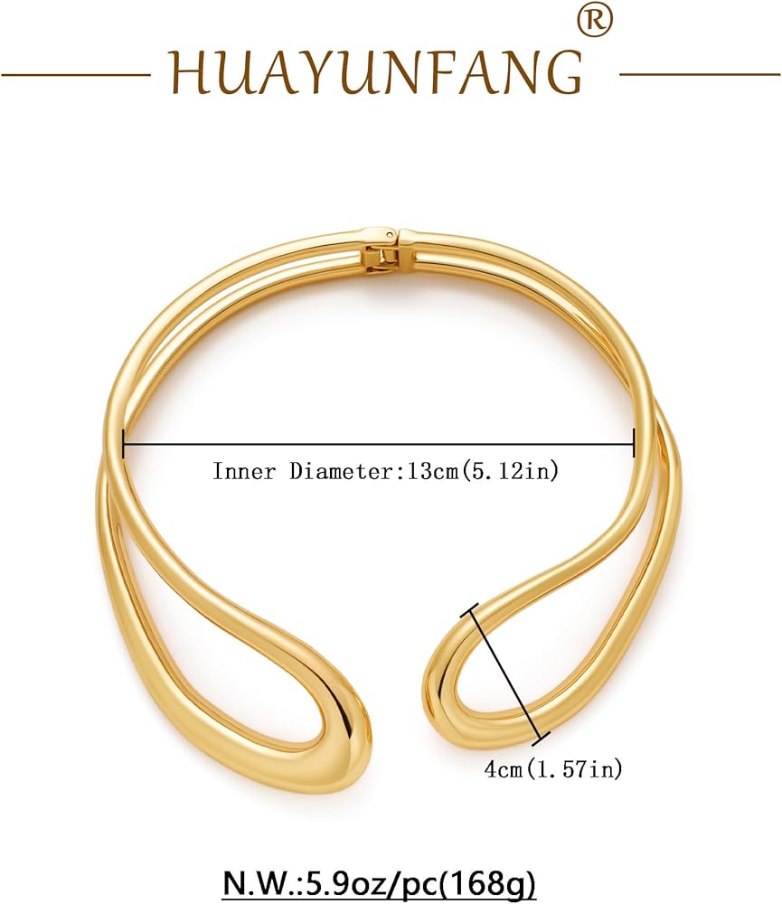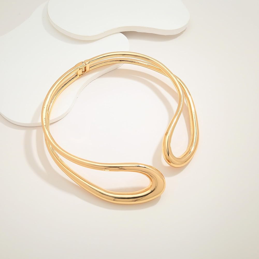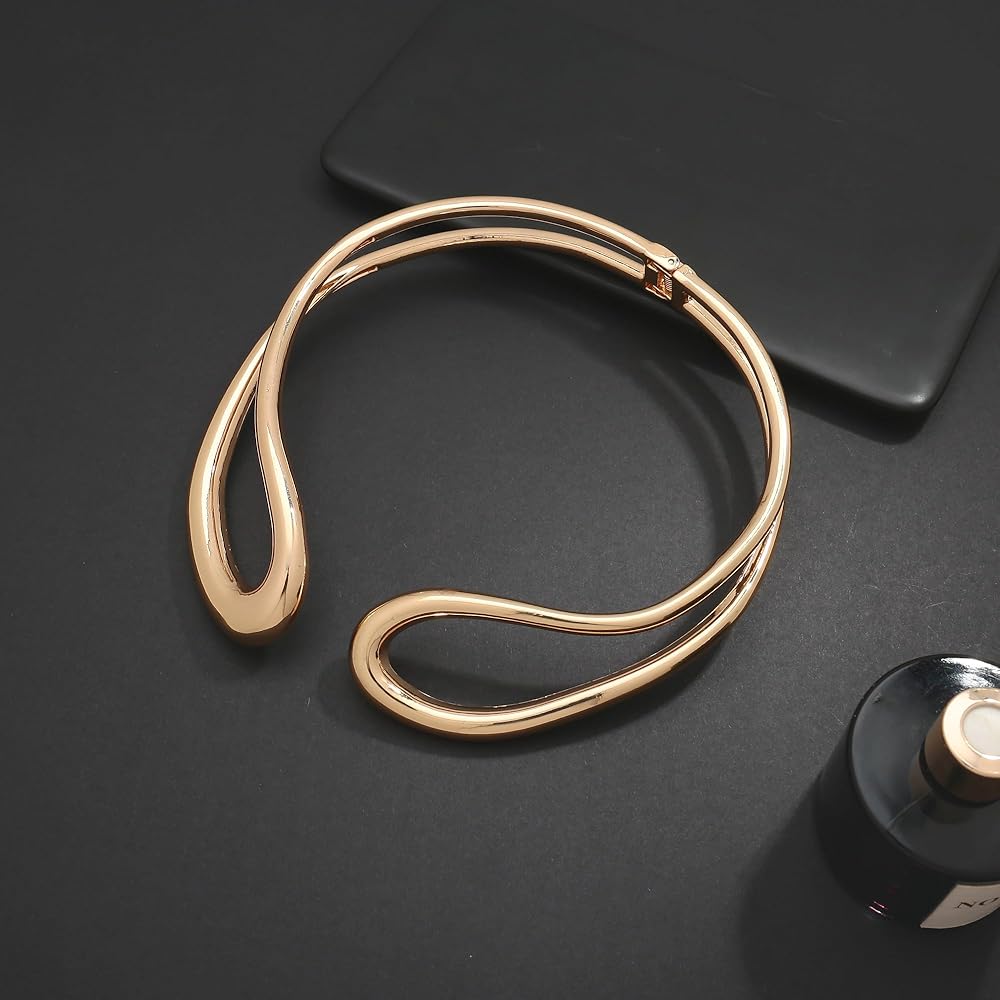 HUAYUNFANG Gold Silver Chunky Choker Necklace For Women Waterdrop Choker Collar Necklace Bold Statement Necklaces Spring Hinged Open Necklaces Trendy Jewelry