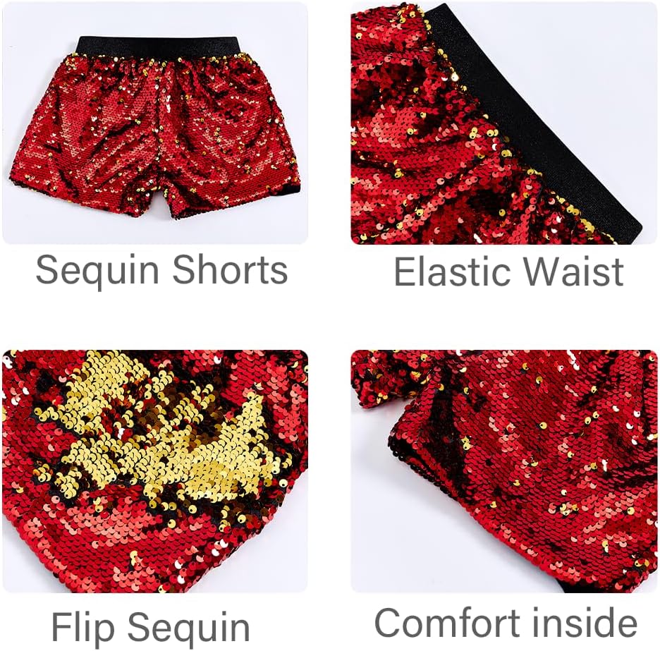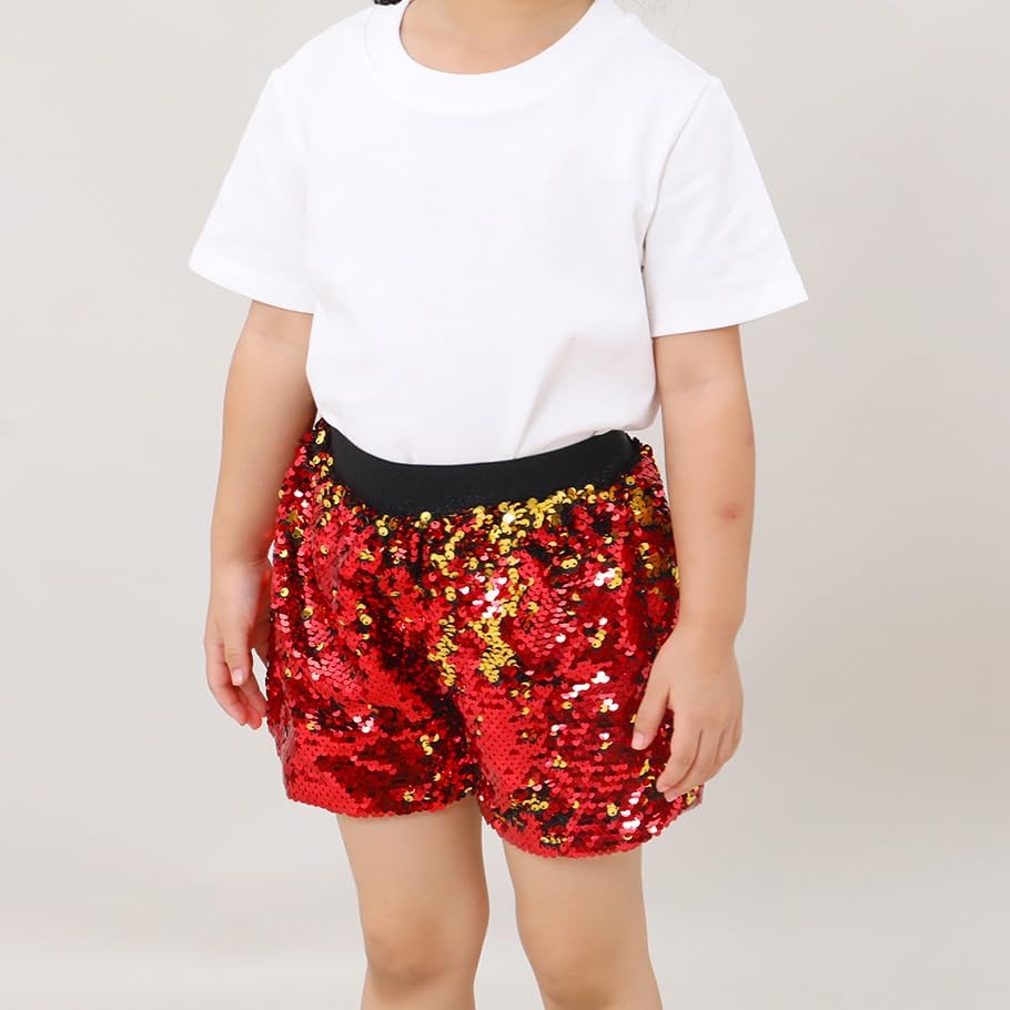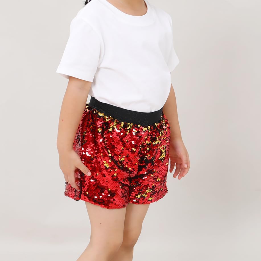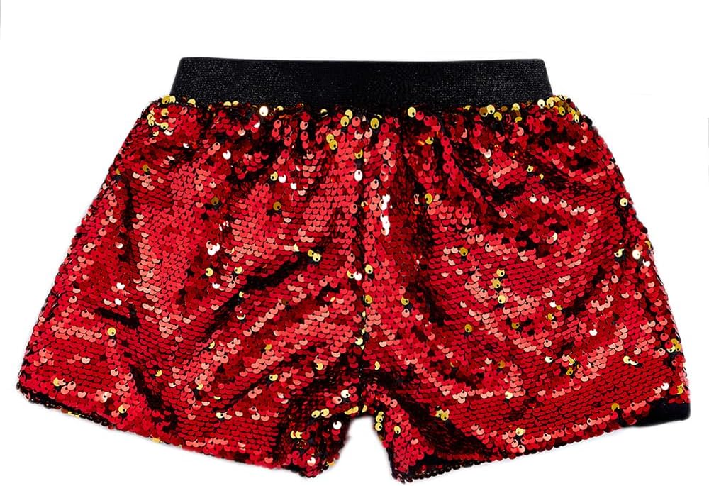 شورتات الترترات اللامعة: Sequin Glitter Shorts الفتيات مع الترترات الوجه ، يمكن أن يتغير اللون ، الخصر مرن وممتد ، هو قيعان قصيرة عصرية أنيقة للغاية لأطفال الفتيات.