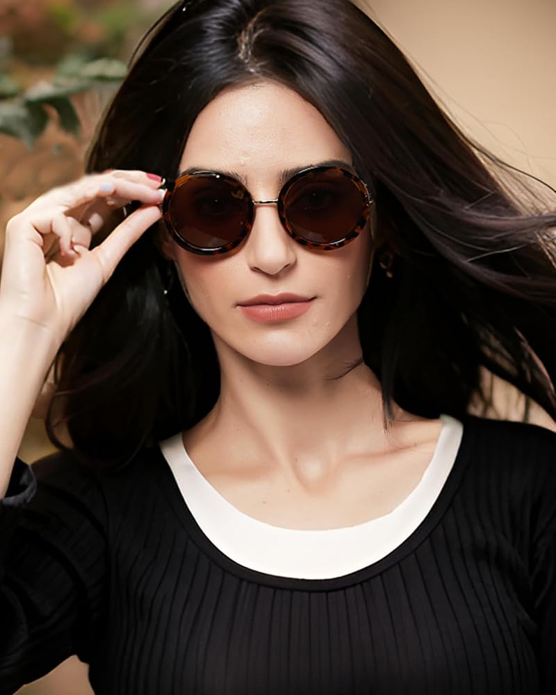 الموضة والتصميم: نظارة شمسية مستديرة كبيرة الحجم تجمع بين أسلوب الكلاسيكية والعصرية ، مع تسليط الضوء على ملابسك بعد ارتداء هذه النظارات القديمة