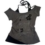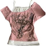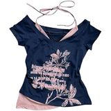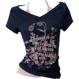 قمصان إيمو الجرونج للسيدات 2000s جرافيك للأطفال تي شيرت مزيف من قطعتين بأكمام قصيرة عتيقة Y2k ملابس قصيرة على شكل قوطي