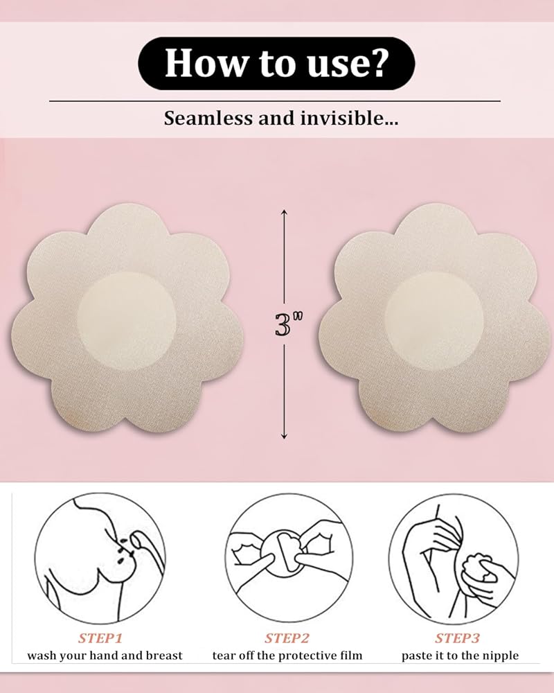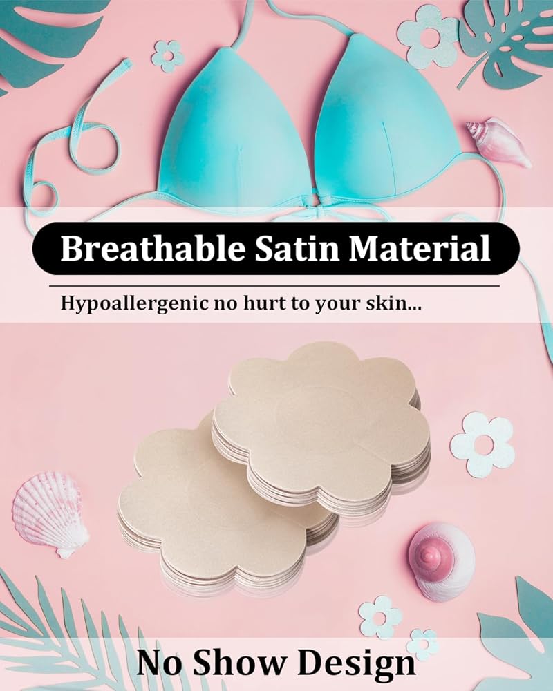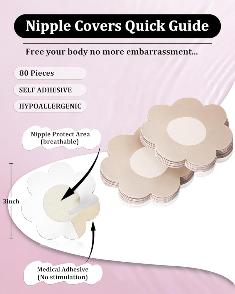 80 PCS فطائر الحلمة للنساء يغطي حلمة الساتان التي يمكن التخلص منها ملصقات لاصقة من الثدي البتلة (Beige الخفيفة)