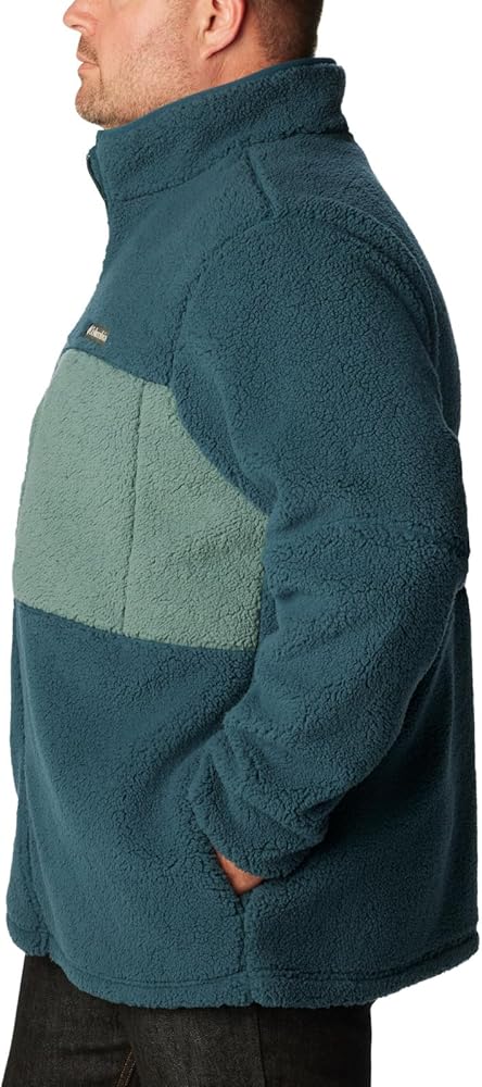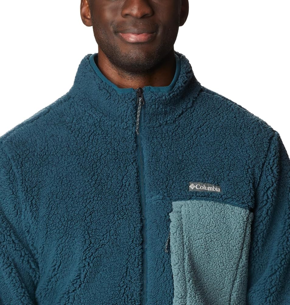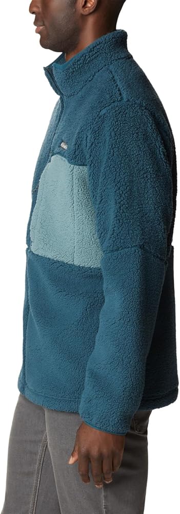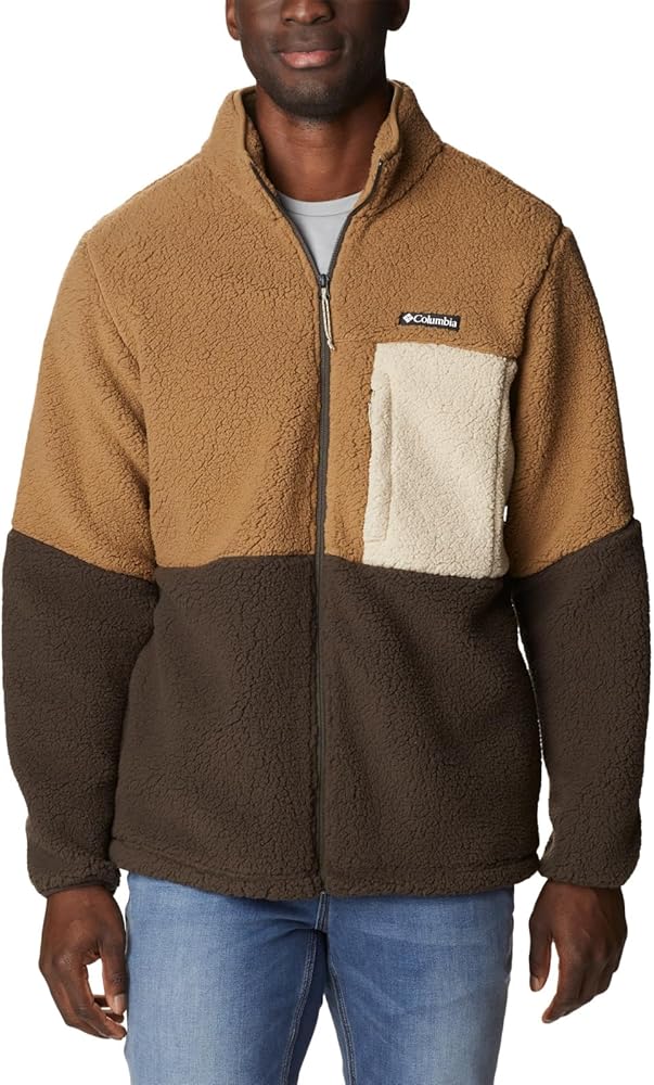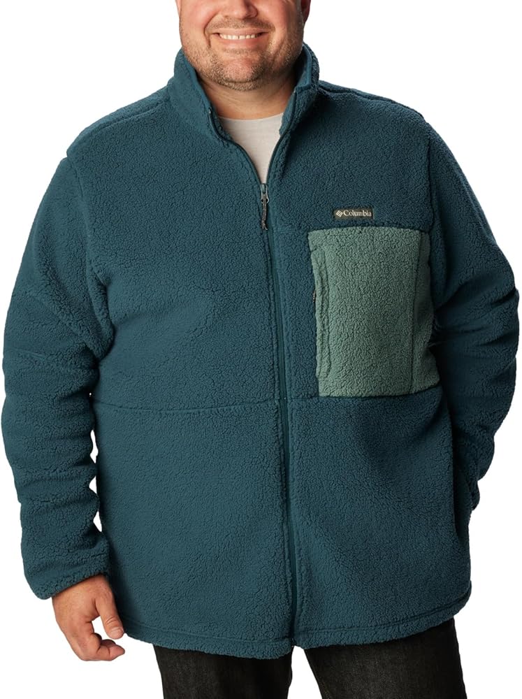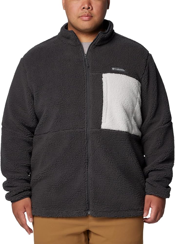 Whether you're chasing summit views or gathered around the campfire, this jacket offers soft, cozy, sherpa fleece warmth to keep you going. You're bound to be warm and long-lasting in this fleece jacket. It's the perfect layering piece to combat the cold. It features a warm collar that's flexible enough to wear it up or down, and includes a stylish color-blocked zippered chest pocket, two hand pockets, and elastic at the hem to keep the warmth in place. Columbia offers this men's jacket with a range of colors and sizes. Regular Fit. To ensure the size you choose is right, utilize our sizing chart and the following measurement instructions: For the sleeves, start at the center back of your neck and measure across the shoulder and down to the sleeve. If you come up with a partial number, round up to the next even number. For the chest, measure at the fullest part of the chest, under the armpits and over the shoulder blades, keeping the tape measure firm and level.