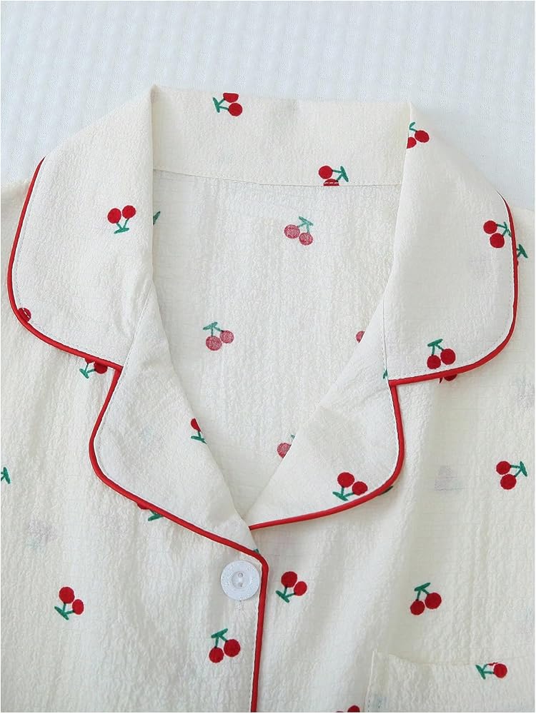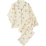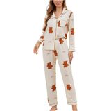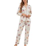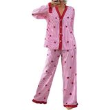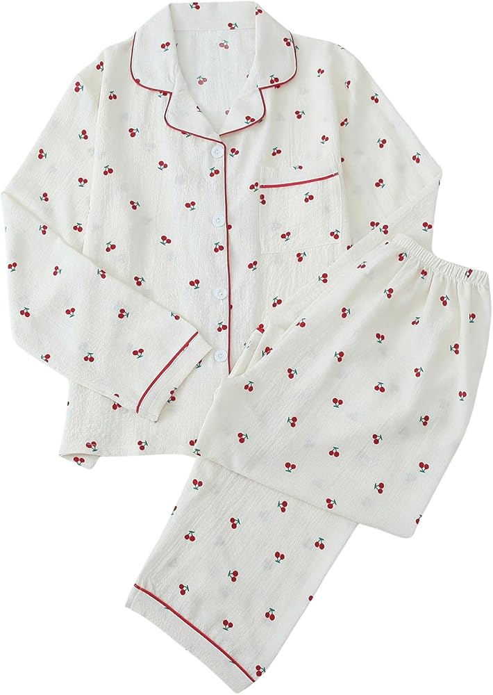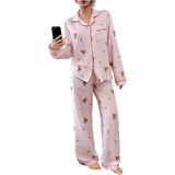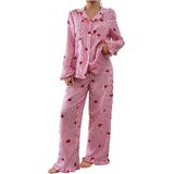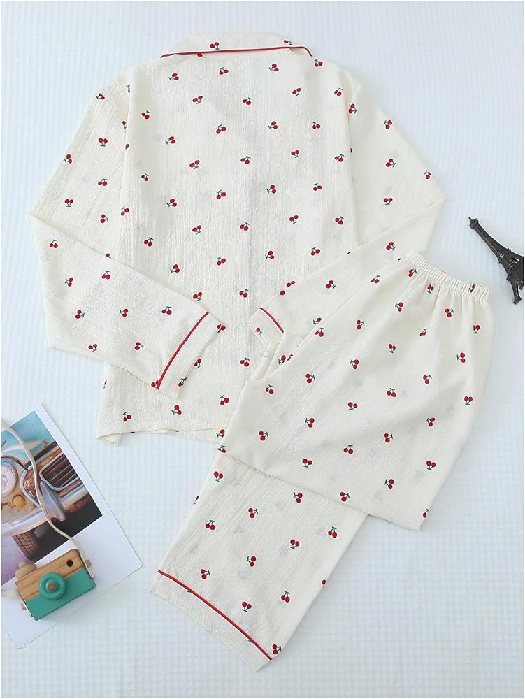 - Long Sleeve, Lapel Collar, Button Down Shirt, Long Pants, Nightwear Pajama Sets