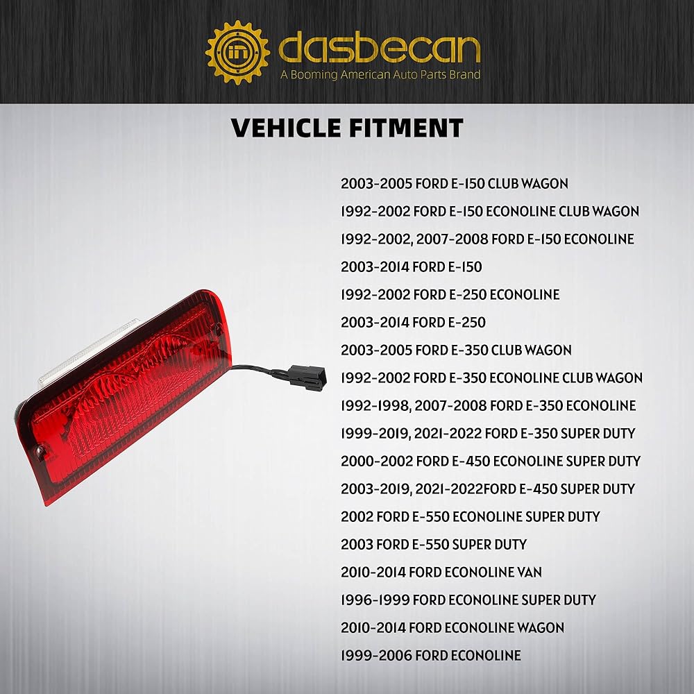 Dasbecan 923-290 Center High Mount Stop Halogen Light Compatible with Ford E150 E250 E350 E450 E550 Econoline 1992-2022 Replaces 6C2Z13A613B F2UZ13A613B XC2Z13A613BA