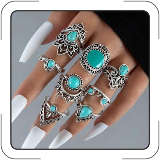 الحلقة الفيروزية ستتلقى 8 حلقات نسائية بوهيمية ، حلقة الفيروز جميلة جدًا ، ترمز إلى الأحلام. هناك مجموعة متنوعة من الأحجام والأنماط المختلفة لتناسب كل من أصابعك ، والتي يمكنك تكديسها أو ارتداءها بشكل فردي