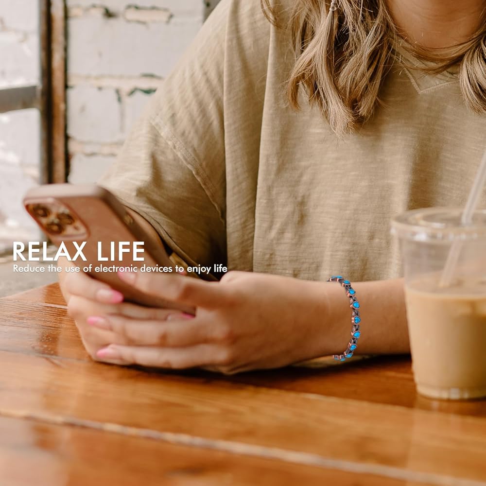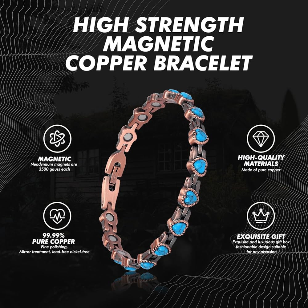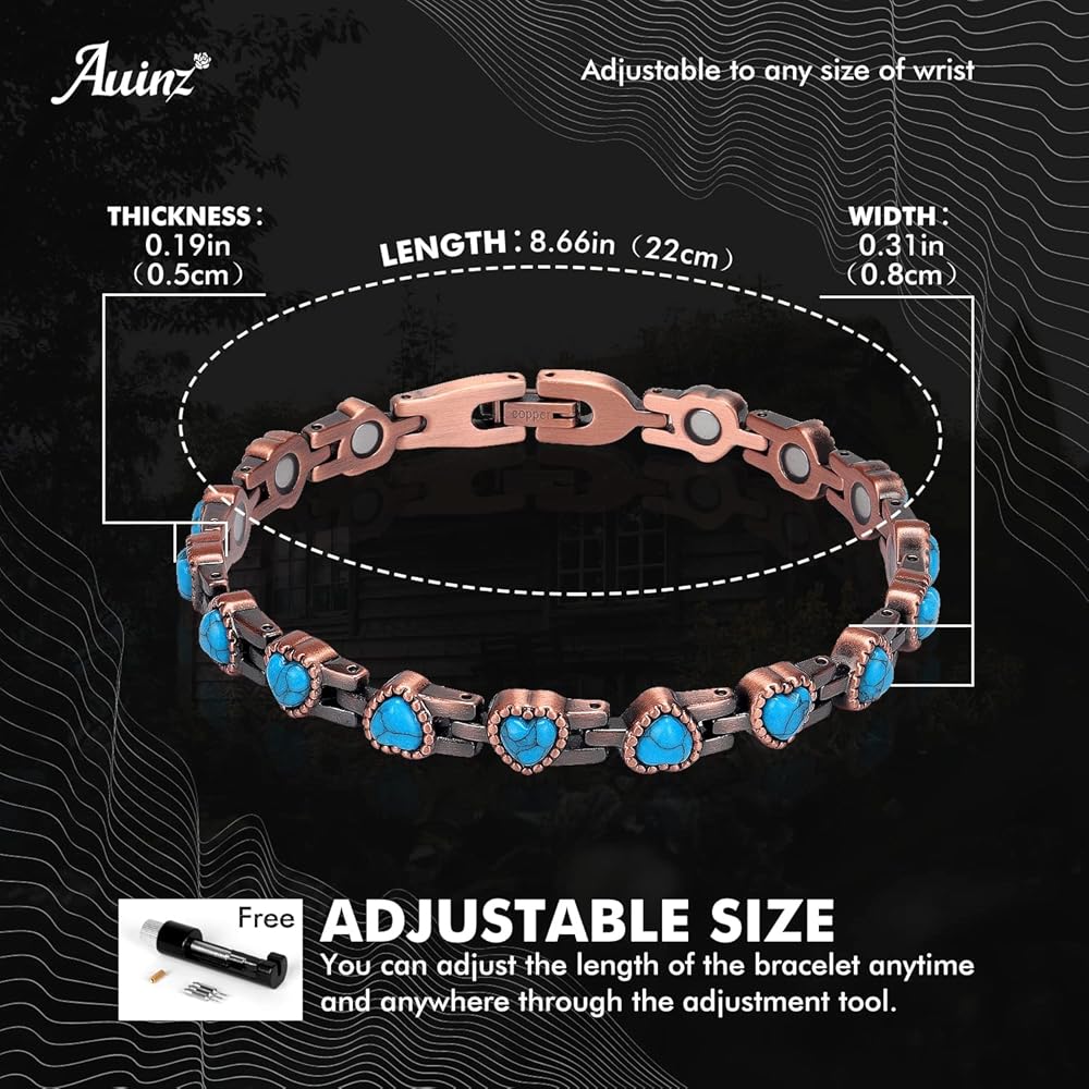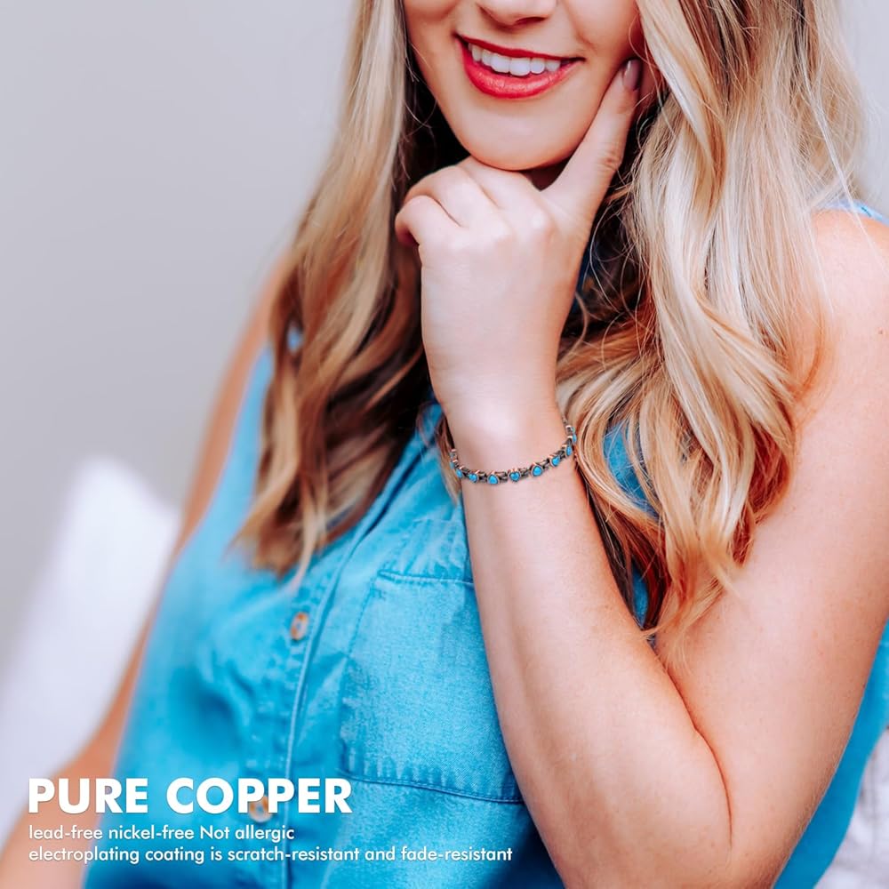 Turquoise Pure Copper Magnetic Bracelet for Women's Adjustable Bracelet (Blue Turquoise)