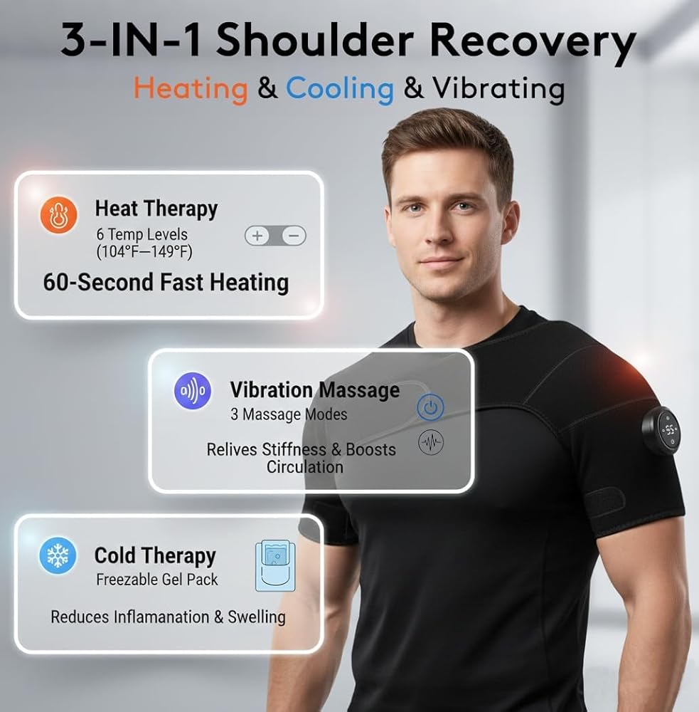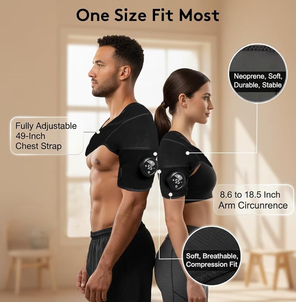 • تسخين سريع لمدة 5 ثوانٍ: استمتع بالدفء الفوري تقريبًا من خلال تقنية 5S السريعة ، المصممة لتهدئة المفاصل القاسية على الفور وإصابات الكفة المدورة والتهاب الأوتار وغيرها من المضايقات المرتبطة بالكتف.