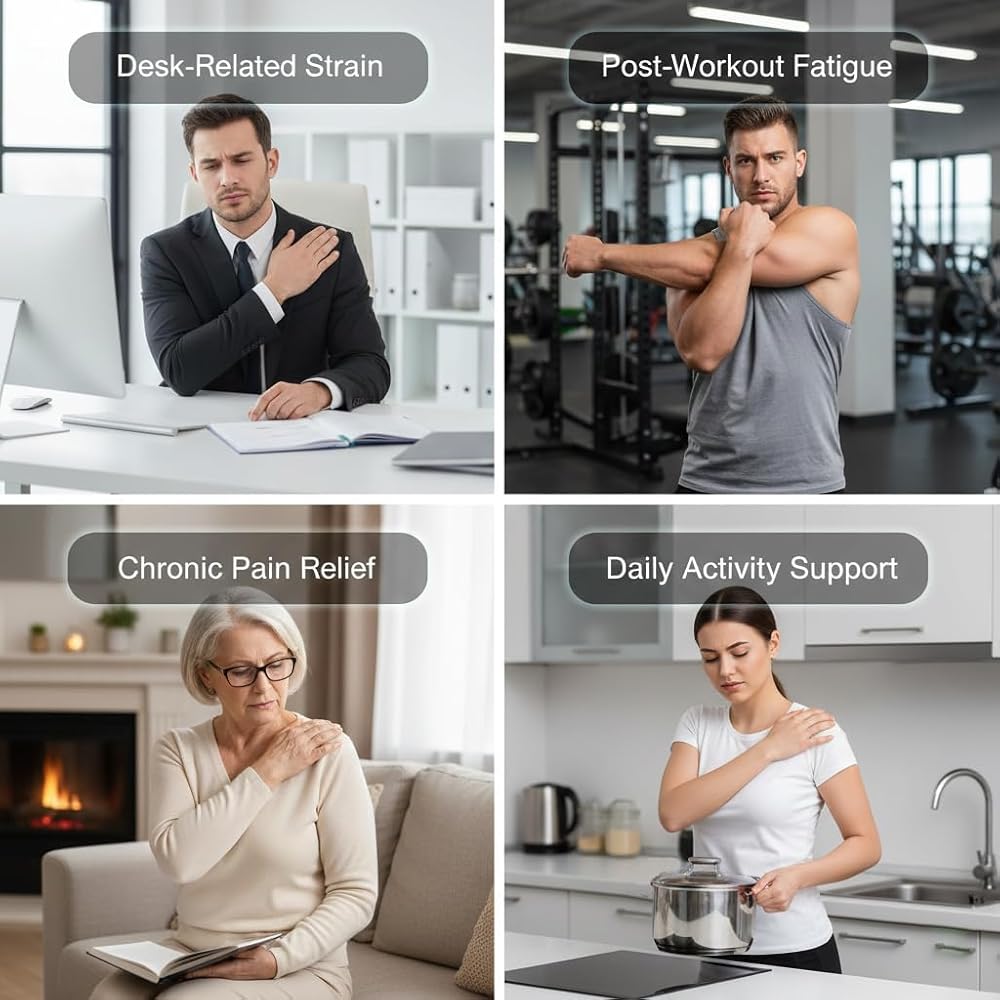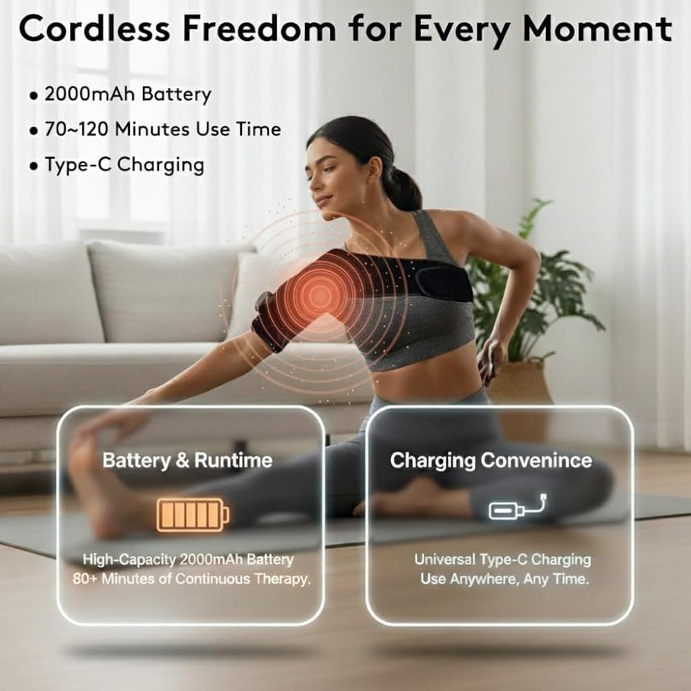 • التصميم اللاسلكي والقابل لإعادة الشحن: مدعوم من بطارية 5000 مللي أمبير في الساعة ، يوفر مدلك الكتف اللاسلكي ما يصل إلى 3 ساعات من الاستخدام المستمر - يخرجك من قيود المخرج سواء كنت في المنزل أو العمل أو السفر.