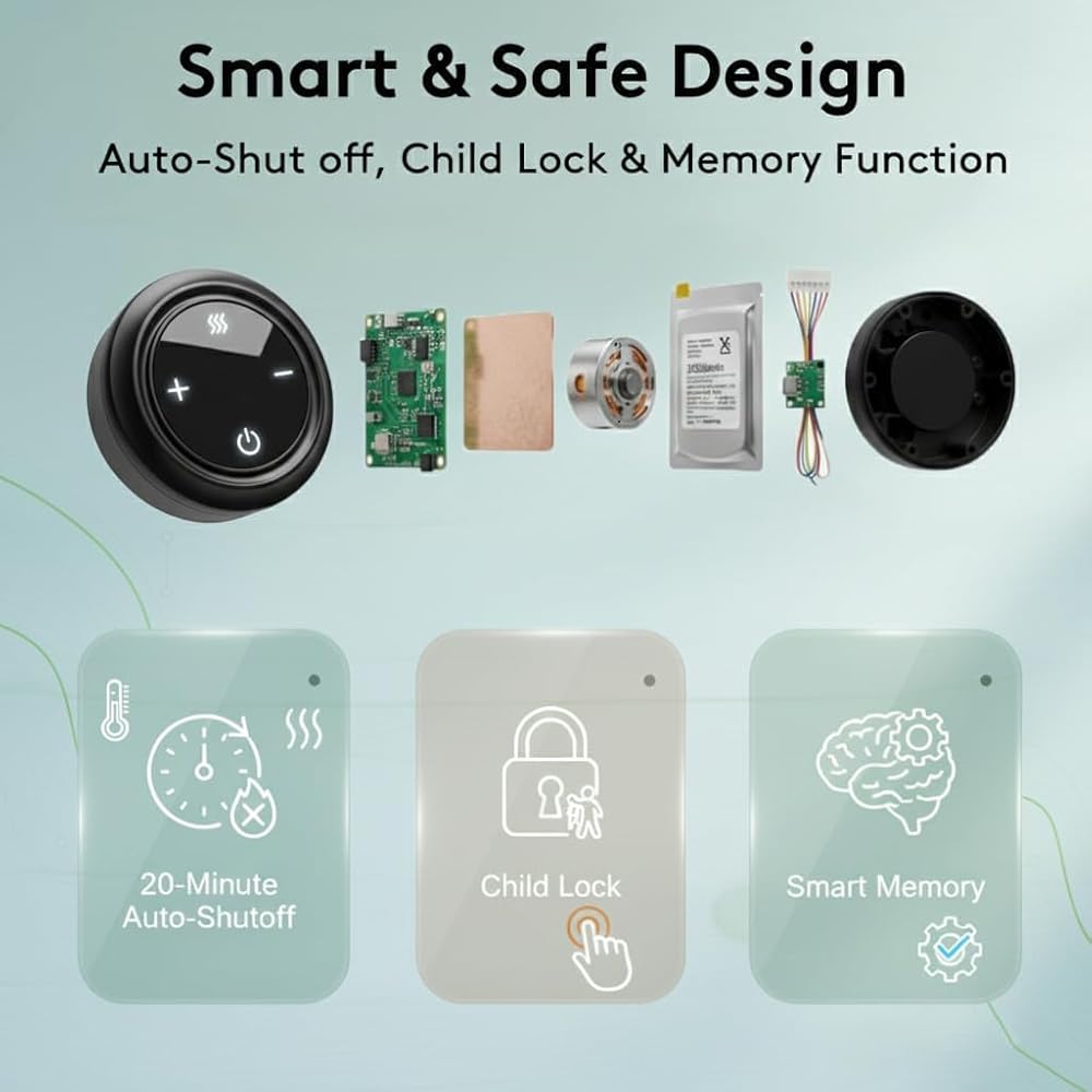 • درجة حرارة LED ومراقبة البطارية: تتبع بسهولة درجة الحرارة في الوقت الفعلي ومستويات البطارية مع شاشة LED مدمجة. اضبط الإعدادات بثقة ، مما يضمن لك دائمًا البقاء ضمن نطاق حرارة آمن ومريح.