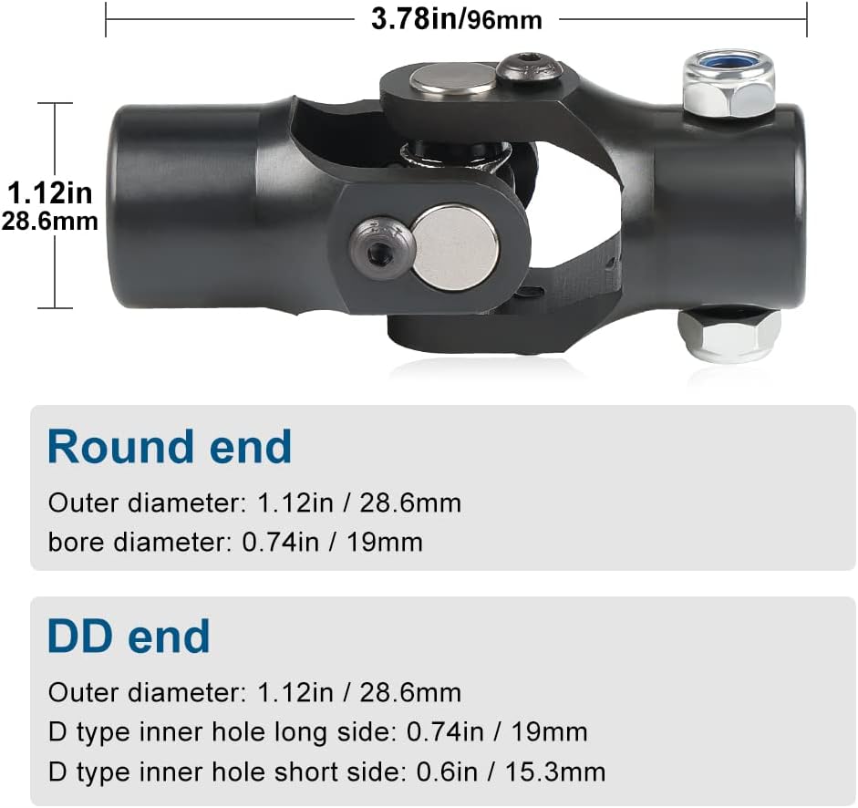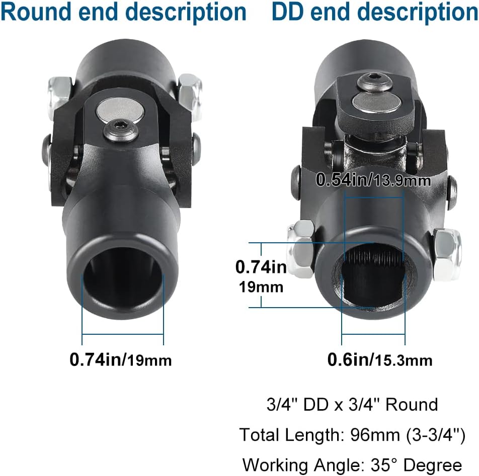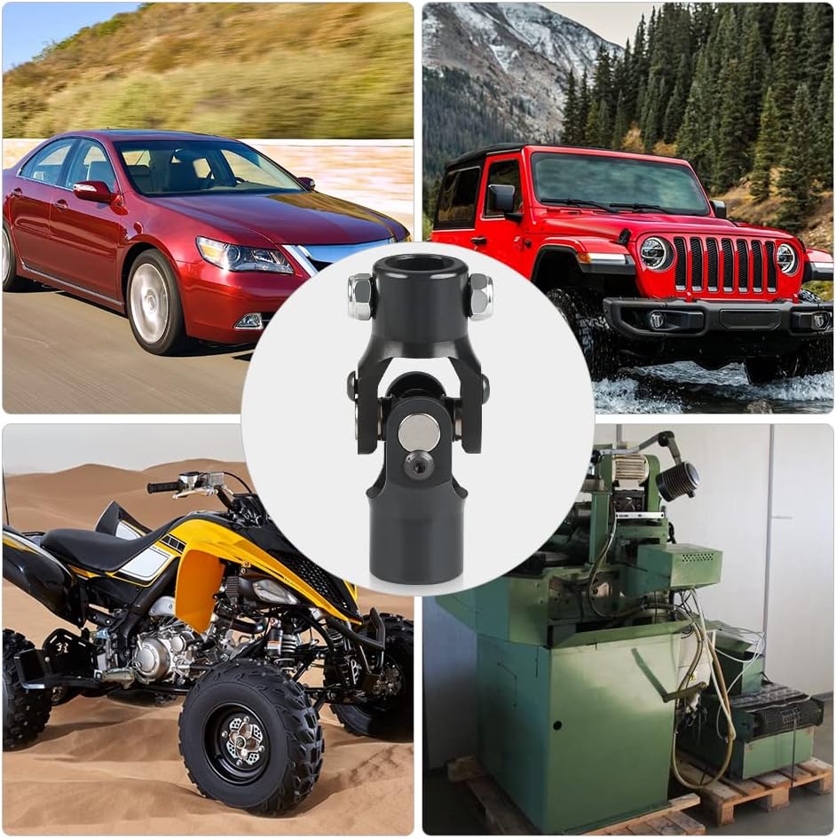 For automotive parts, for example compatible with steering shaft Mustang II Chevy pick-up Dodge Dakota Ford Pontiac Ram VW Bug SUV jeep and most brands of cars. Double ujoints shaft compatible with rock crawler, muscle car, street rod, hot rod or sand rail, etc, and also fits grinding machines, automated partking lifts, levelers, sea valves on boat, etc