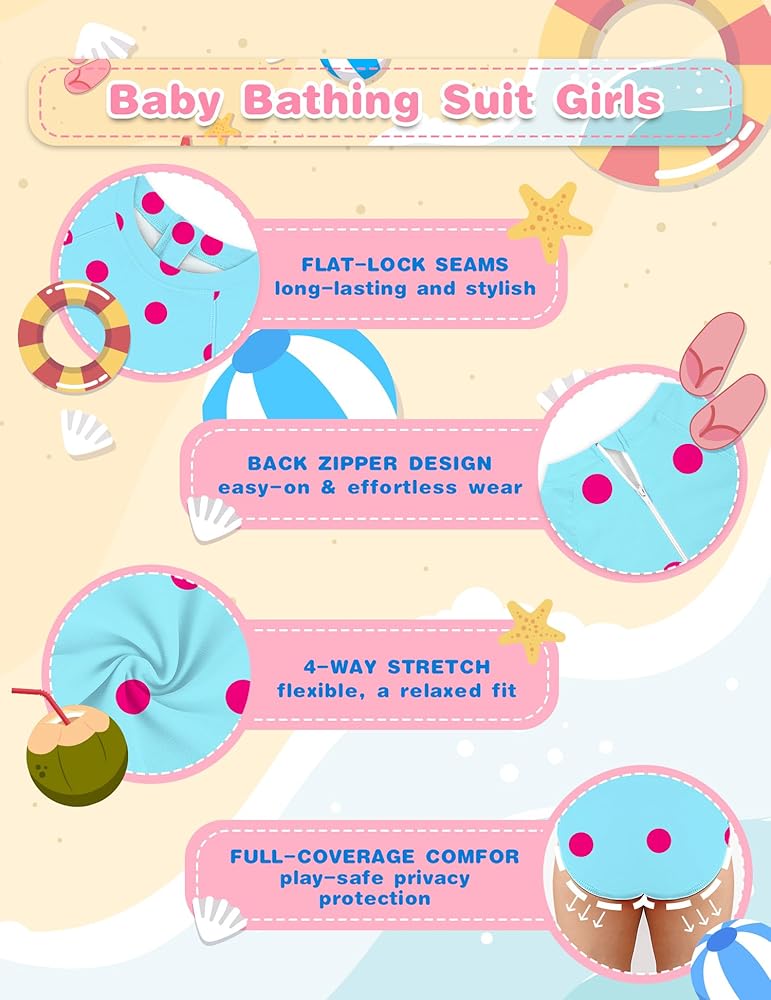 • تصميم السوستة السهل على الظهر --- تنزلق بدلة السباحة الحريرية المكونة من قطعة واحدة دون عناء ، مع نسيج يشبه السحابة الذي يبقي الأطفال الصغار مريحين خلال المغامرات الرائعة.