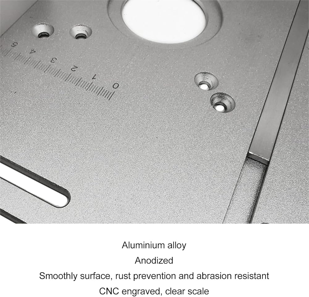 Smooth Operating: The aluminum appearence of this router insert plate has been finely machined to provide a smooth appearence, allowing for improved workpiece sliding and precise cutting. This attention to detail results in efficient and accurate woodworking projects