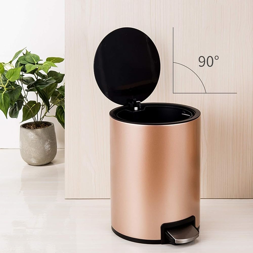 The Champagne Gold Drum-Shaped Pedal Trash Can is the perfect blend of style and functionality. Constructed from stainless steel and PP, this 12L trash can is designed to add a touch of elegance to your home. Its pedal operation provides hands- convenience, making it easy to dispose of trash while maintaining cleanliness. The inner bucket features a built-in garbage bag storage hole, ensuring neat edges and a tidy appearance when the bag is in place. The flat lid design offers superior odor control, keeping your home fresh and hygienic. The lid opens fully to 90°, making it simple to remove and replace the trash bag or clean the can. Ideal for use in kitchens, offices, bedrooms, and bathrooms, this trash can is a functional yet stylish addition to any room.