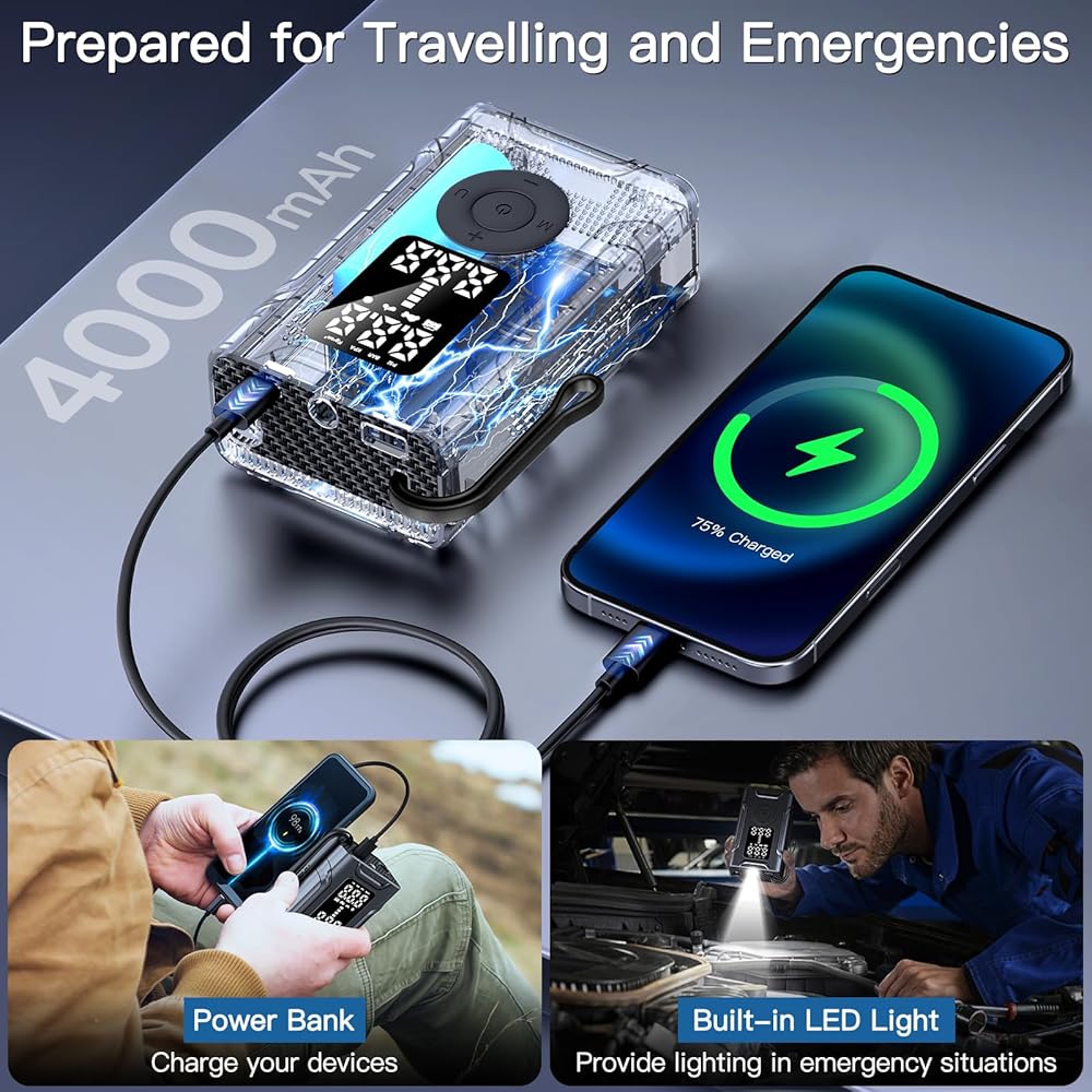 متعدد الوظائف ، مناسبة لحالات التنوع. يمكن استخدام مضخة التضخم هذه لأغراض متعددة ، بما في ذلك تضخيم إطارات سيارتك أو كرات السلة أو حلقة السباحة أو شحن هاتفك ، بالإضافة إلى توفير إضاءة الطوارئ مع مصابيح LED مدمجة ، تساعدك في الاستجابة لمواقف الطوارئ المفاجئة.