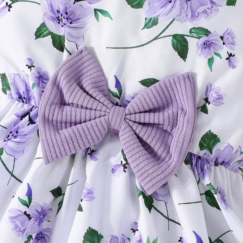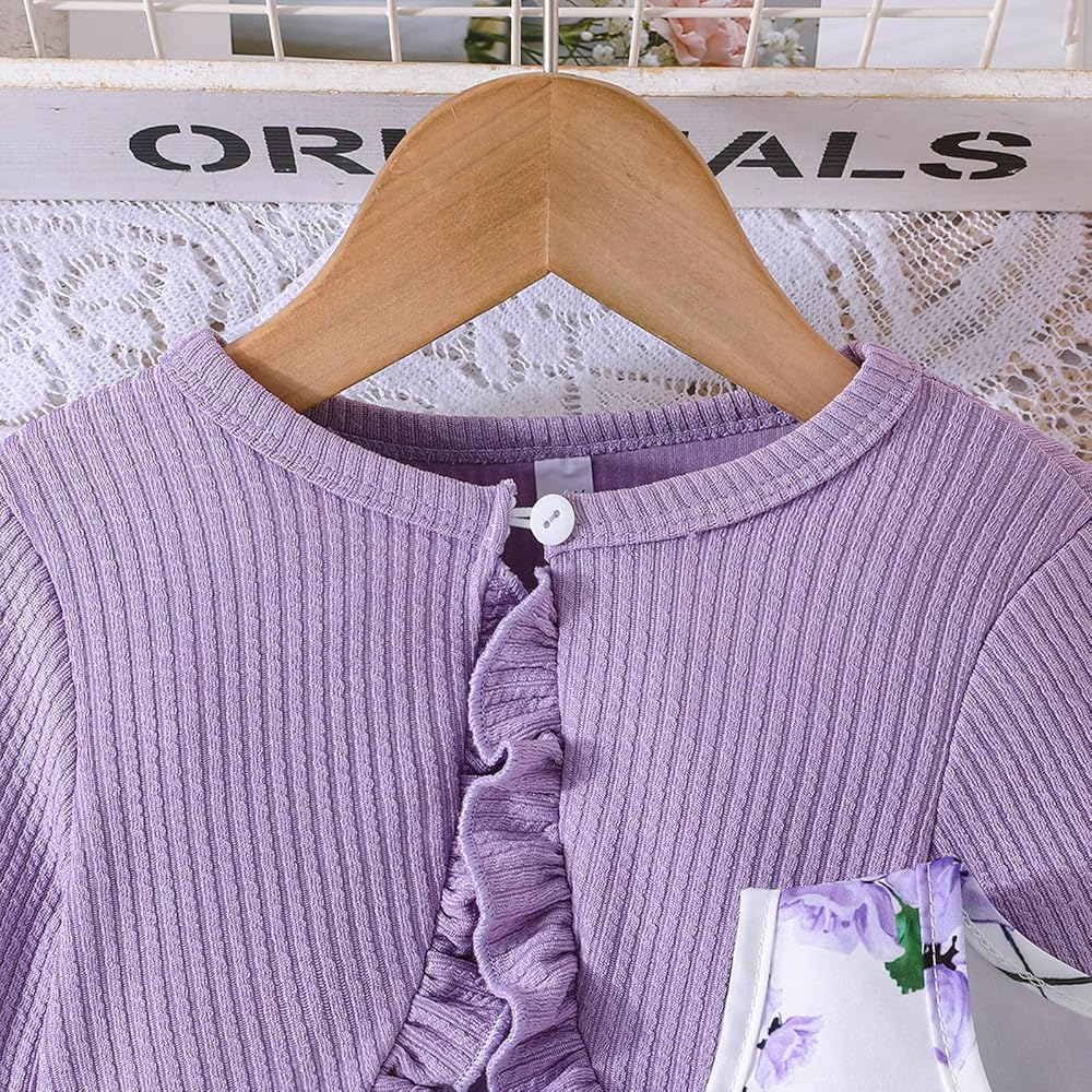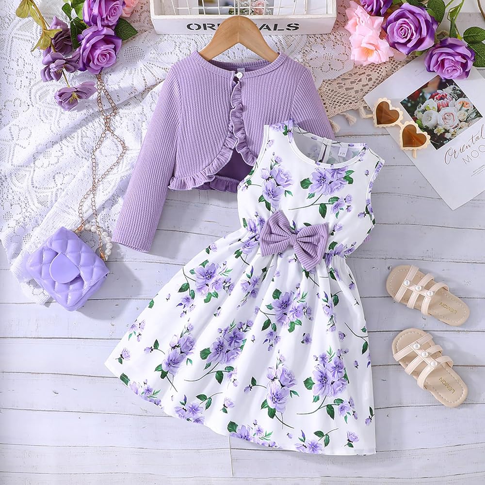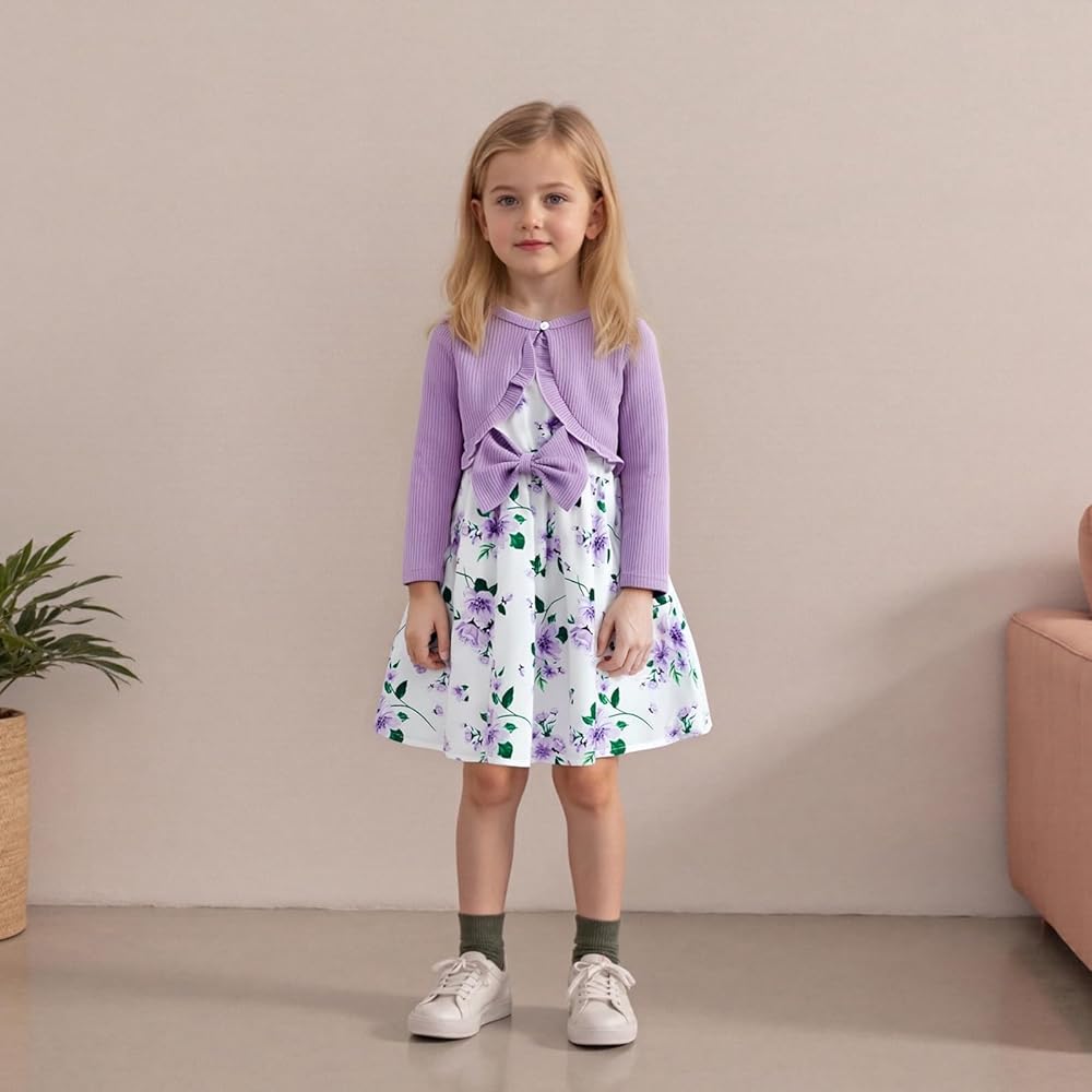 • Design: Little girl dress with draped a-line hem, round neck, floral print and bowknot design, and comes with a solid color long sleeve ribbed ruffled trim lightweight knit sweaters cardigan jacket, which can be worn as a set or separately with other pieces in your baby's wardrobe