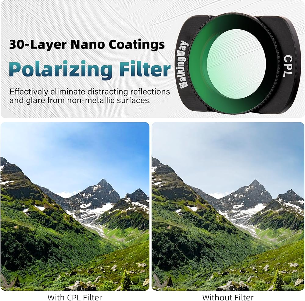 【تعزيز تباين اللون ، وإزالة الوهج】 Walking Way CPL ، تساعد مرشحات CPL على التقاط نطاق ديناميكي أكثر فائدة وتفاصيل لإضافة حيوية إلى صورك. يتميز بالقدرة على القضاء على التوهج من الأسطح غير المعدنية مثل الماء والزجاج وتحسين نسيج الصورة. هذا يعزز اللون والتباين ، مما يؤدي إلى صور أكثر وضوحا وأكثر إقناعا.