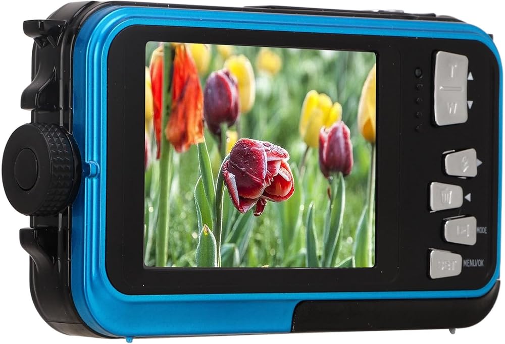 كاميرات تحت الماء مع فيديو 2.7 كيلو بايت ، صورة 48 ميجابكسل ، شاشات مزدوجة ، كاميرا رقمية مقاومة للماء 10 أقدام للغطس ، تدعم الكاميرا المقاومة للماء التسجيل أثناء الشحن (الأزرق)