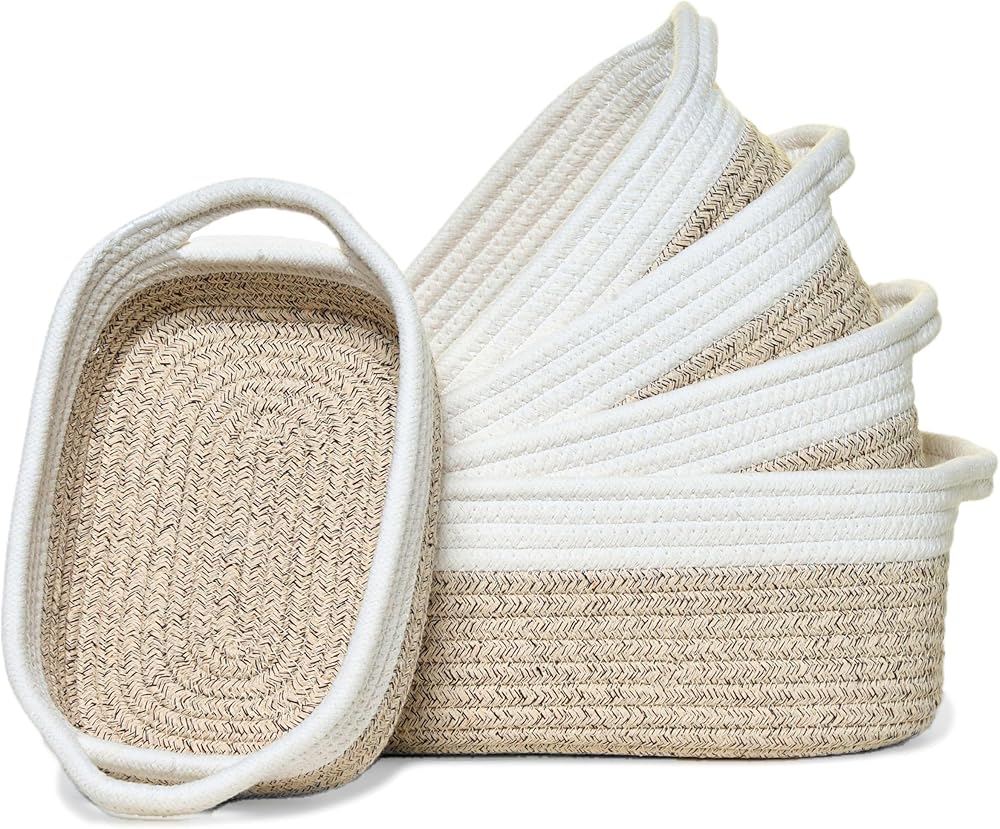 Keep your home clutter-free in style. Our set of five baskets ranges from 11.8″ × 8.7″ × 4.3″ (largest) down to 8.7″ × 5.5″ × 2.8″ (smallest), so you always have just the right size for the job. Whether you're corralling dog toys in the living room, organizing baby essentials in the nursery, or stashing toiletries in the bathroom, these baskets adapt to your needs—and complement every décor from modern minimalism to cozy farmhouse.