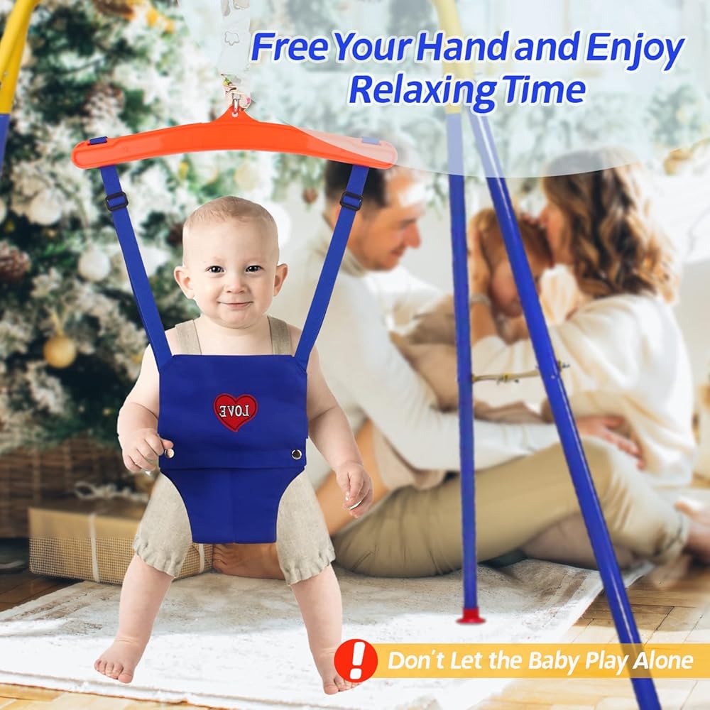 【Baby Jumper for Active Babies】The baby activity jumper with stand helps the baby exercises leg muscles and helps to correct and upright posture during exercise. The jumper for baby doesn't depend on doorways and allows the baby exerciser to be used both indoors and outdoors. This baby swing jumper makes the baby grow up healthily and helps to free parent ‘s hands, also a good way for parent-child interaction