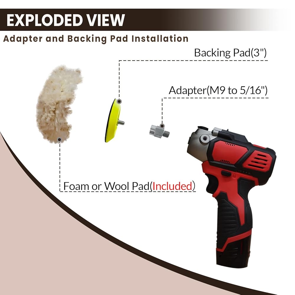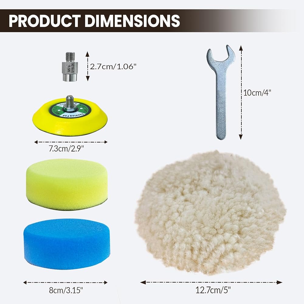 This combination includes 1 3-inch backing pad hook and loop, 1 5/16-24 thread adapter, and 1 hexagonal open-end wrench. This simple combination will make your sanding work even better