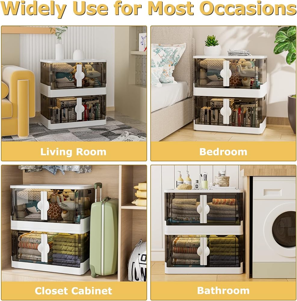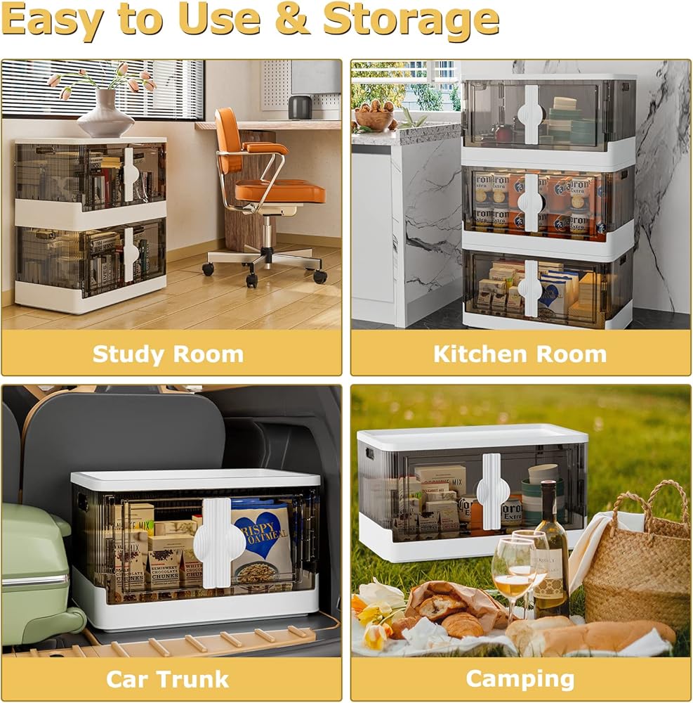 【بابان مفتوحان لسهولة الوصول】- يوفر لك صندوق التخزين القابل للطي ذو العجلات طريقتين لفتح صندوق التخزين الخاص بنا، يمكنك فتحه من الغطاء العلوي أو الباب الأمامي؛ عندما تقوم بتكديس الأغراض المتعددة، يمكن أن يساعدك الباب الأمامي في خلع الأشياء التي تحتاجها بسرعة دون خلط الصناديق، ويساعدك الباب العلوي على وضع كل شيء بالداخل بكفاءة.