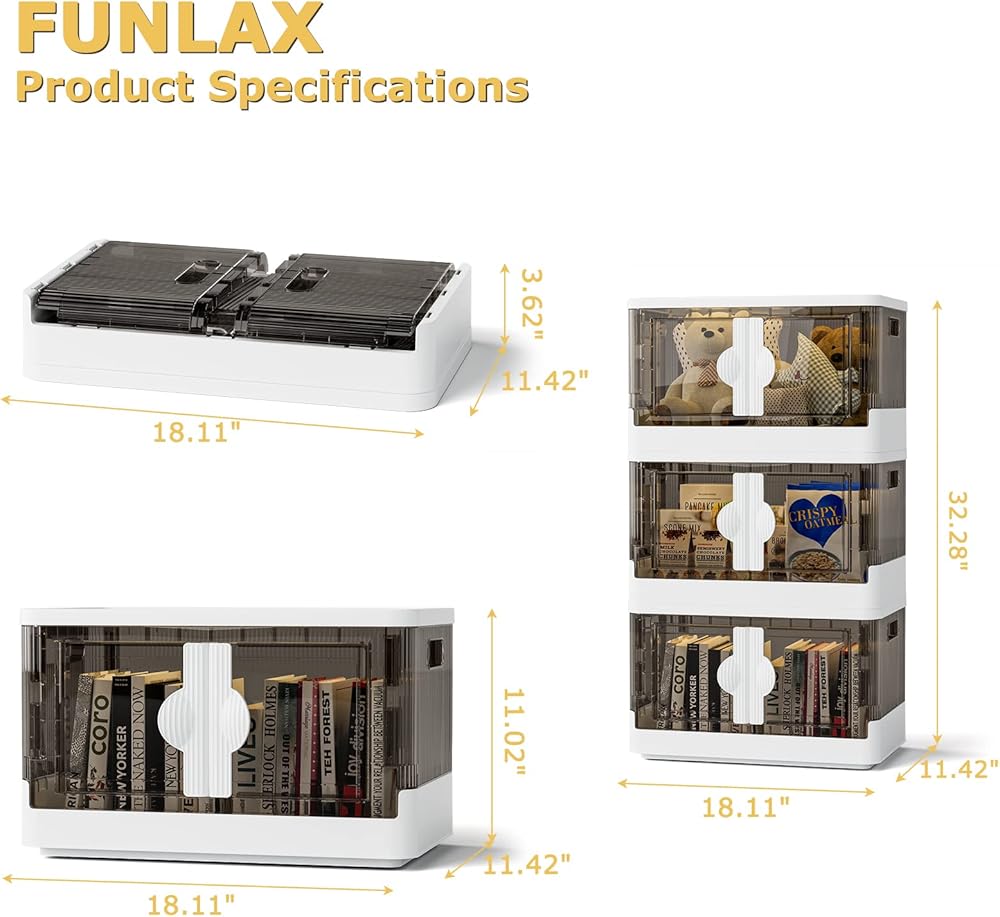 【سعة تخزين كبيرة】- يبلغ حجم كل صندوق من صناديق التخزين القابلة للطي ذات الأبواب 18.11 بوصة × 11.41 بوصة × 11.02 بوصة، ويبلغ الحد الأقصى لسعة التخزين 8.2 جالون، وهي قوية بما يكفي لتحمل وزن 110 رطل (50 كجم). ملحوظة: عند تكديس صندوق التخزين القابل للطي، يجب وضع الأشياء الثقيلة في الأسفل، وإلا سيكون هناك خطر الانقلاب.