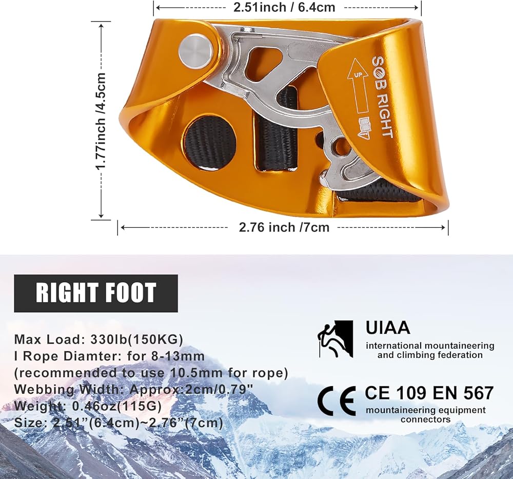 【Reliable Materials】Foot ascender is made of aluminium magnesium alloy. Safe and reliable, the Foot ascender can hold up to 330 pounds.