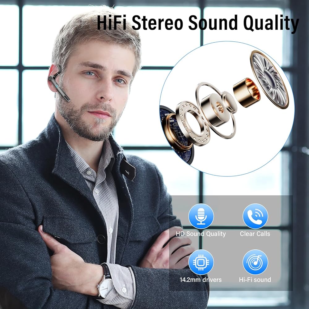 تقليل الضوضاء وتكنولوجيا الاتصال HD: تم تجهيز سماعة الأذن Bluetooth بتكنولوجيا التحكم في الضوضاء البيئية ، والتي تقضي بشكل سلبي 75 ٪ من ضوضاء الخلفية ، مما يضمن مكالمات واضحة وتجربة موسيقى غامرة. تتميز سماعة الرأس اللاسلكية هذه برامج تشغيل ديناميكية مركبة منخفضة الإجهاض 14.2 مم مع اتزان مضمن عالي الدقة وتكنولوجيا ترميز الصوت AAC و SBC.