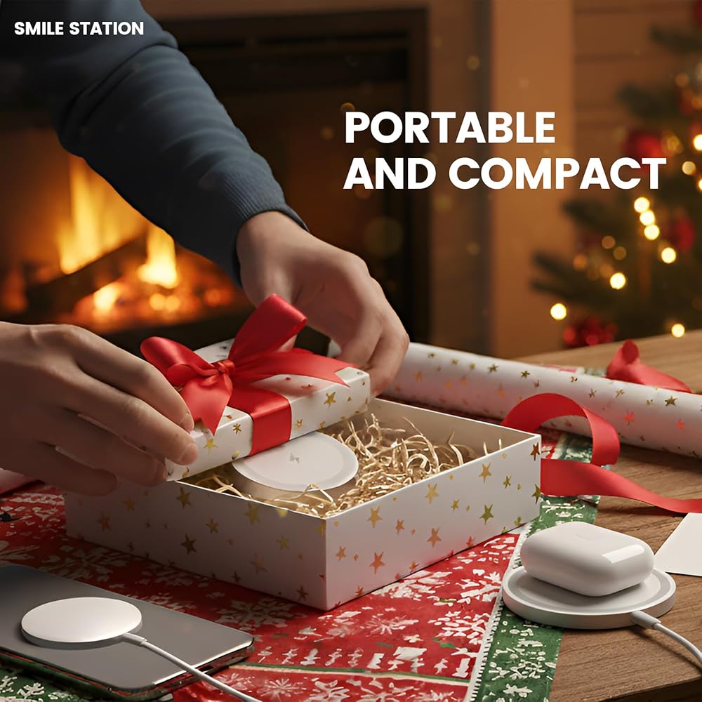 Stable Anti-Slip Foldable Charger with Better Viewing Angle: Say goodbye to shifting or flipping chargers! This wireless charging station features a slip-resistant silicone base that securely holds devices in place whilemaintaining an optimal viewing angle for watching videos or checking notifications. The foldable construction allows it to compactly fit into backpacks, making it ideal for travel, office use, or bedside charging.