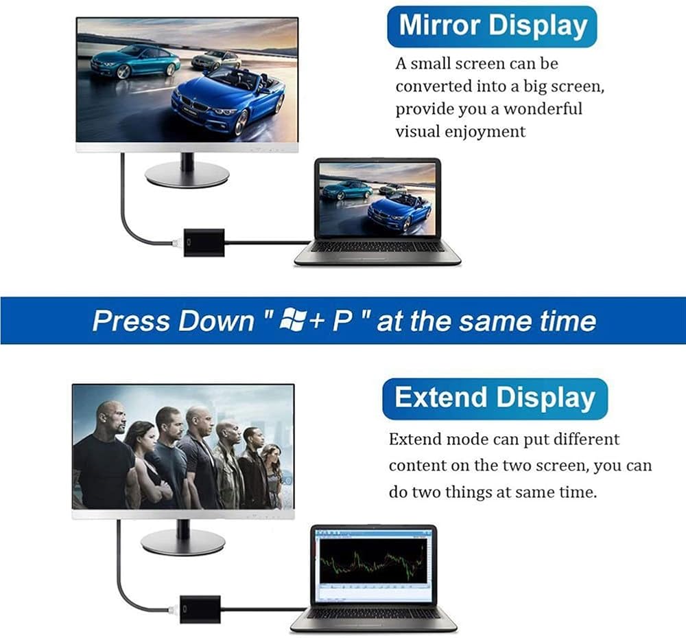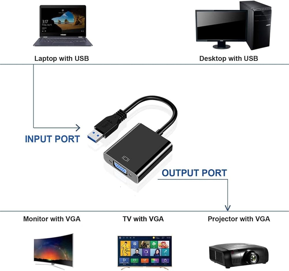 【USED FOR】The USB 3.0 to VGA adapter is USED for windows PC connected to display devices that support VGA port (such as monitors, projector and TV)