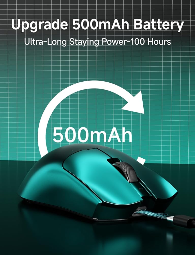 • الأداء المهني المتقدم (26000 DPI & PAW3395 Sensor): تم تجهيز هذا الماوس اللاسلكي للأداء المحترف اللاسلكي بمستشعر PAW3395 الرائد ، و DPI القابل للبرمجة حتى 26000 ، 650 IPS تتبع - مما يتيح لك التعامل بسهولة مع معارك FPS أو أعمال التصميم دون أي جولة. معدل الاقتراع 8K - 8K Wired & 8K Wireless ، اللعبة سلسة للغاية بدون تأخير