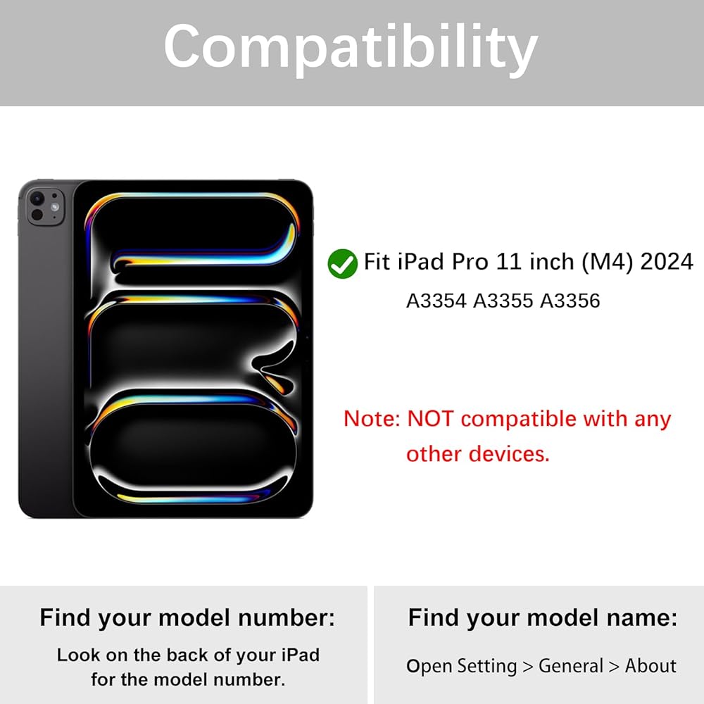 💫【 التوافق】- حالة وقائية لـ Apple iPad Pro 11 Inch 2024 (M4). غير متوافق مع أي أجهزة أخرى. لا قلم في الحزمة.