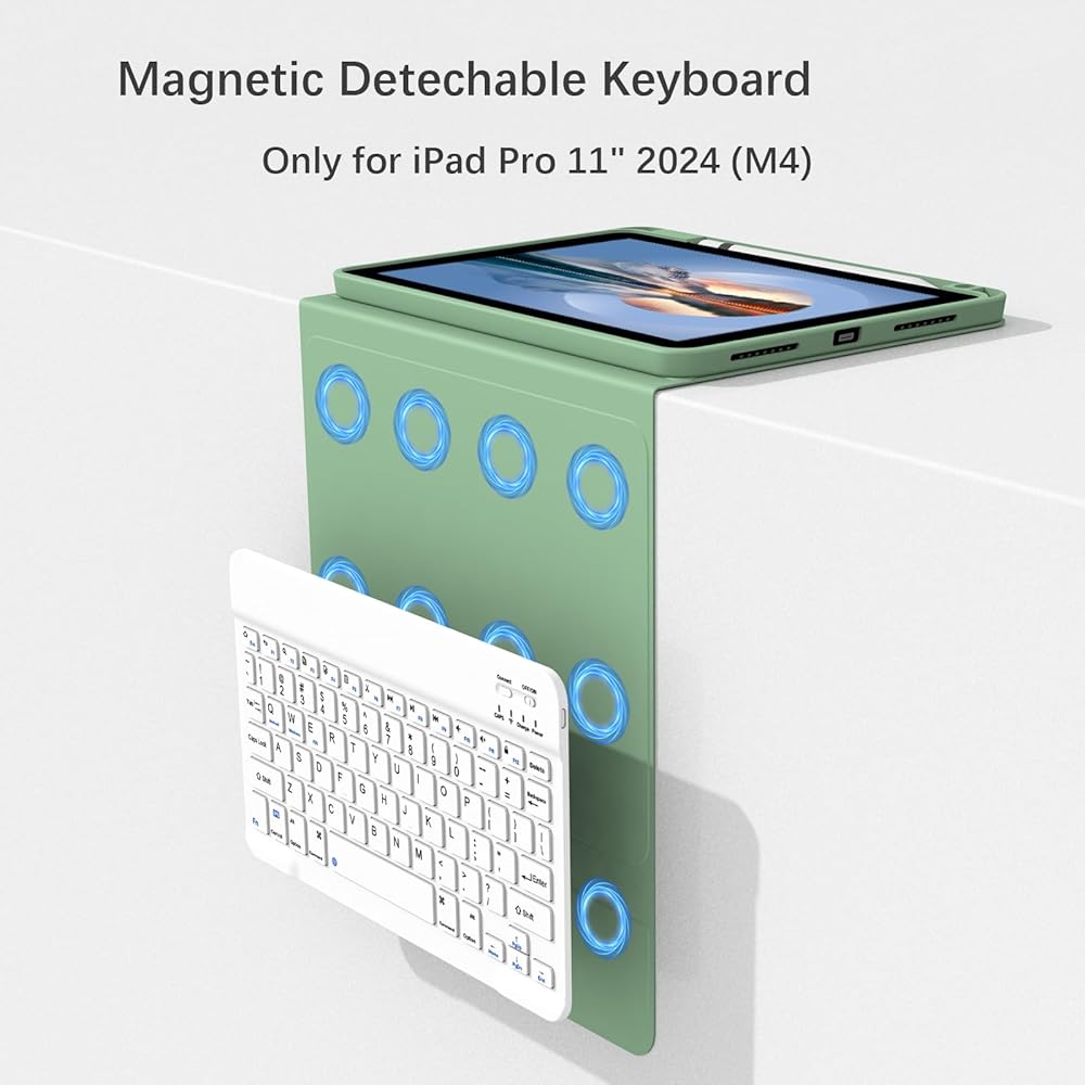 حالة لوحة المفاتيح لـ iPad Pro 11 Inch (M4) 2024 [لوحة المفاتيح اللاسلكية القابلة للفصل المغناطيسية] [دعم 3 نظام] Flip Stand مع حامل قلم رصاص لـ iPad 11 "Pro 2024 (M4) ، Blue)