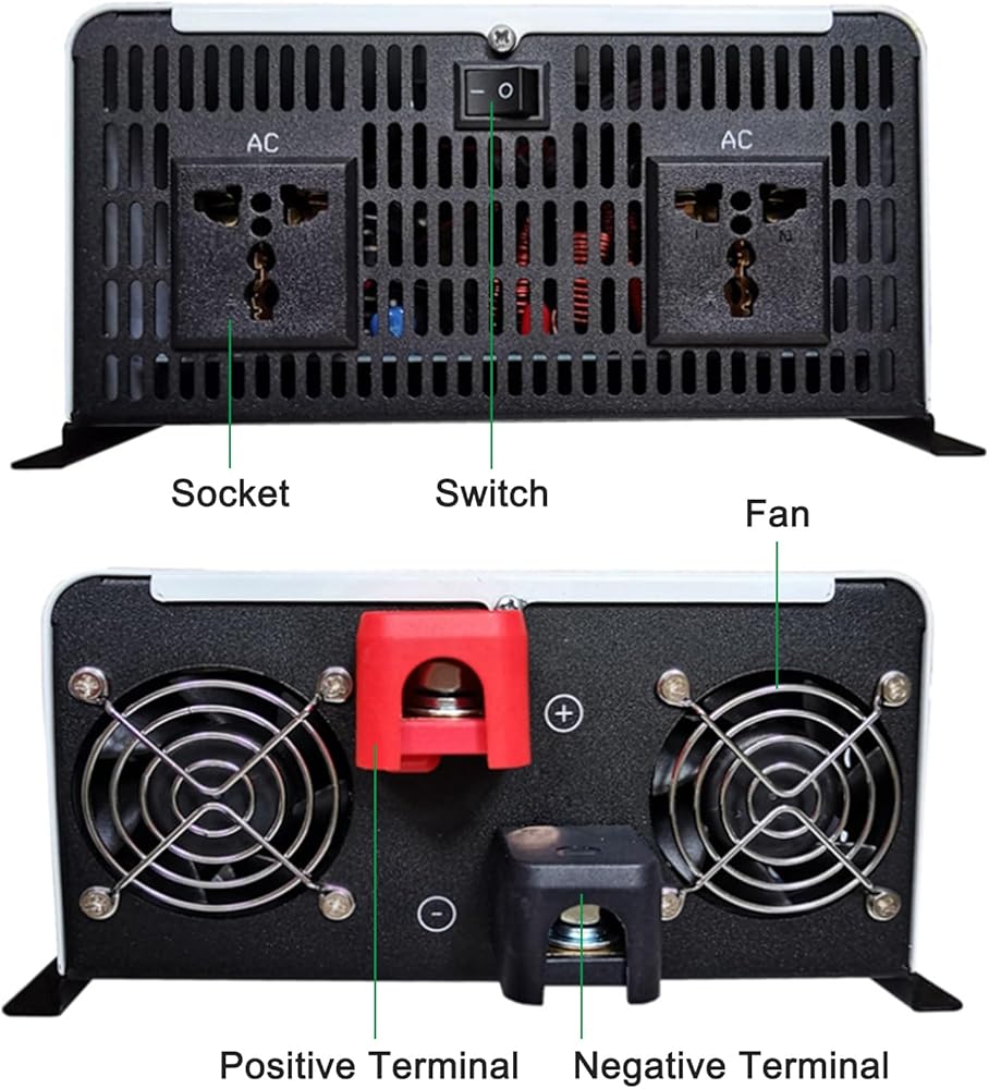 【عاكس الموجة الجيبية النقية المضادة للمؤتمر】 يتبنى محول العاكس للسيارة تقنية موجة جيبية نقية ، والتي لها تدخل منخفض ، ضوضاء منخفضة وسعة الحمل الكبيرة ، وهو محول الجهد يحول 12V / 24V / 48V / 60V / 72V DC إلى 110V / 120V / 220V / 230V / 240V AC. يمكن استخدامه في حالات الطوارئ والتخييم والسيارات والمنازل و RVS والطاقة الشمسية.