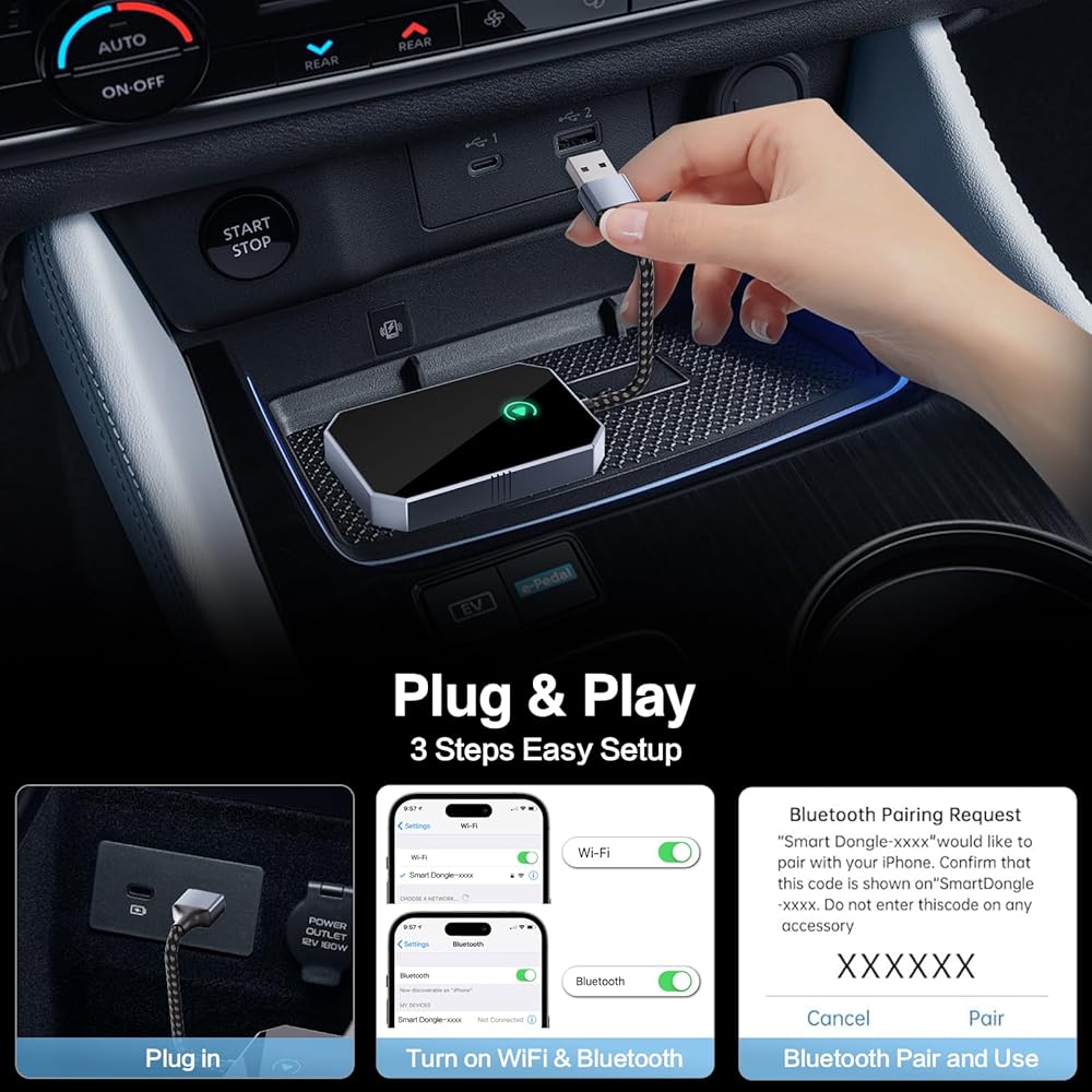 【Android Auto Wireless Adapter】Easy to convert your OEM wired Android Auto to wireless! You could use full android auto function and keep the original car operation such as navigation, music playing, voice assistant, phone calls, radio etc. control everything with a word, Or a touch, Or a twist. This sleek and stylish android auto wireless adapter is the perfect companion for your vehicle!