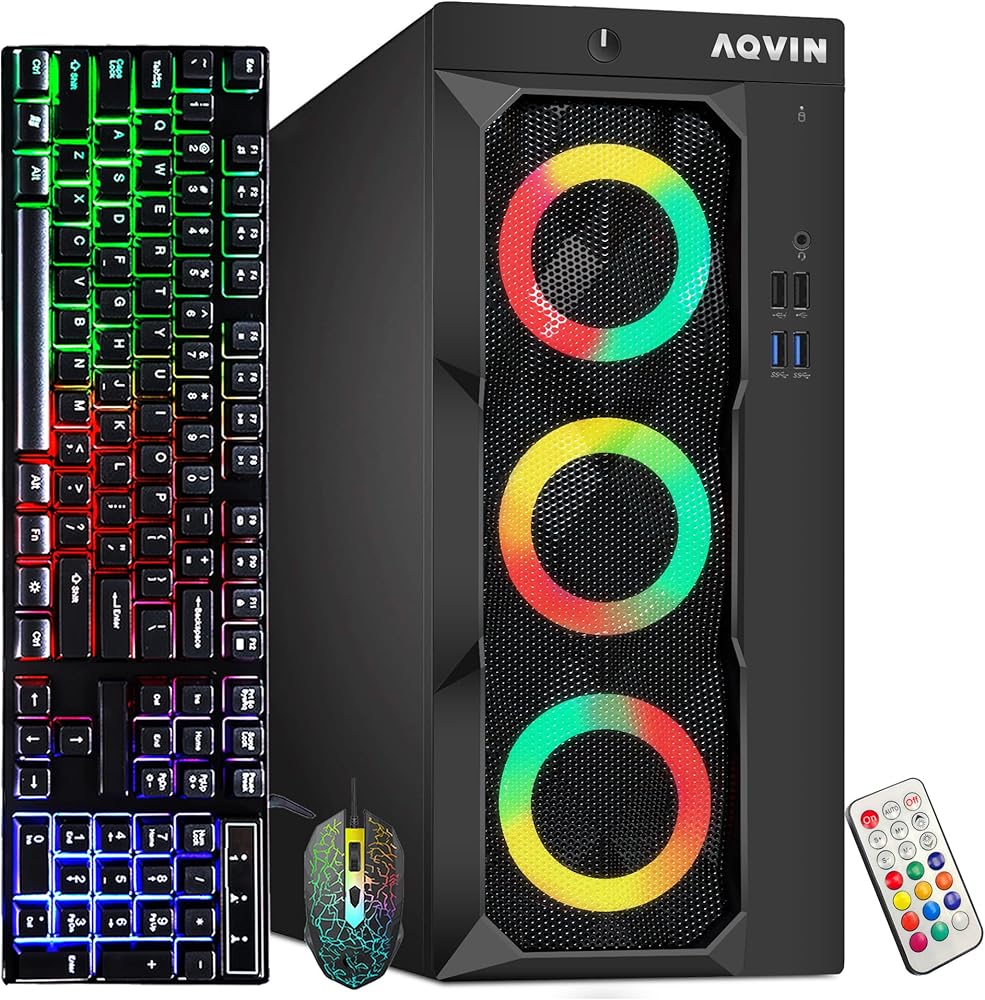 AQVIN LuminaRings Tower Gaming PC - Power and High Performance Gaming Desktop Computer: