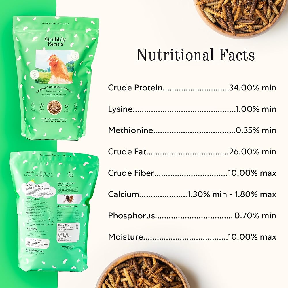 • علاجات الدجاج المغذية: الحواجب عبارة عن حلقات سوداء سوداء مجففة بالفرن. إنها اختيار البروتين الغريزي لقرعك وتعزيز العلف الطبيعي. يمكن رفع ذباب الجندي الأسود على نظام غذائي مخيف للغاية ، أشياء لا ترغب أبدًا في إطعامها دجاجك. يأتي حصاد مسقط رأس Grubblies مباشرة من المزارع في جميع أنحاء الولايات المتحدة وكندا ، ويلتزم بأكثر معايير الاتحاد الأوروبي لضمان نمو اليرقات إلى أعلى جودة.