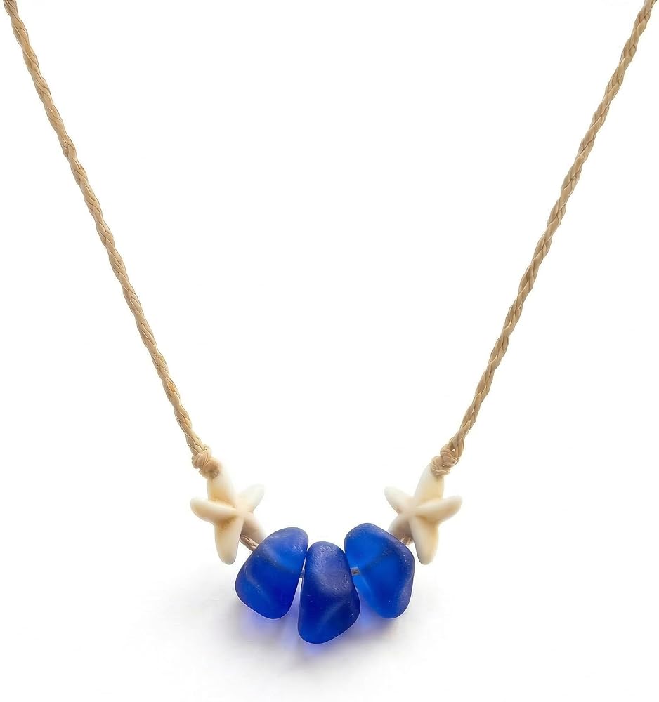 التصميم الجمالي: تتميز هذه القلادة الكلاسيكية 3 بزجاج البحر الأصيلة والأصيلة "الحصى". تم تزيين كل قطعة من الزجاج بتفاصيل قلادة النجوم البيضاء على طراز المحيط بين كل نهاية وكل نهاية. إنه متورط على سلك القنب المصنوع يدويًا في اختيارك للطول.