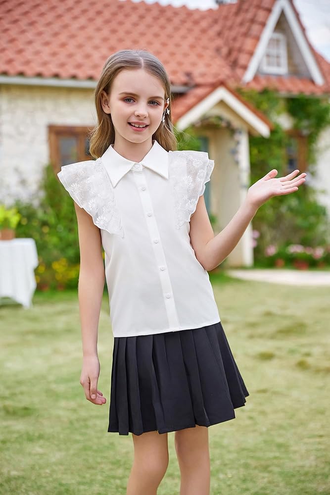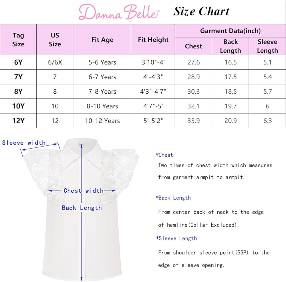 🌮Size: The short sleeve blouse fit with 4-5 years, 5-6 years, 6-7 years, 7-8 years, 8-10 years,10-12 years kids girl. Please refer to our detailed size chart on botton product descrition before ordering.