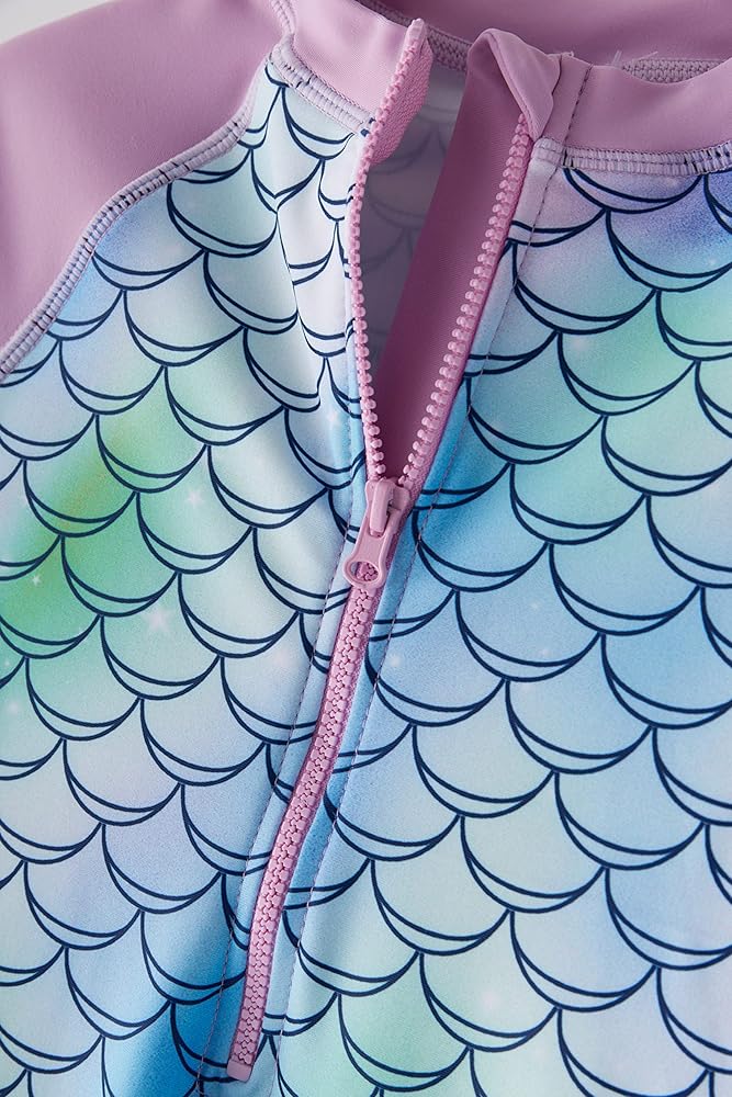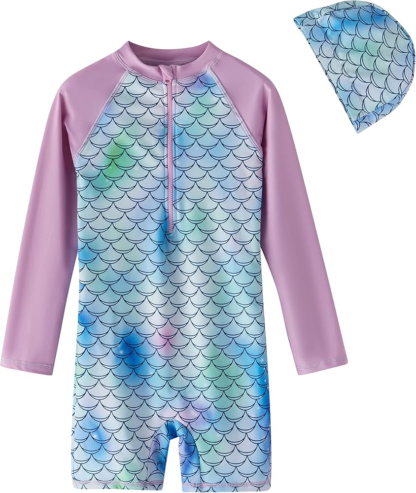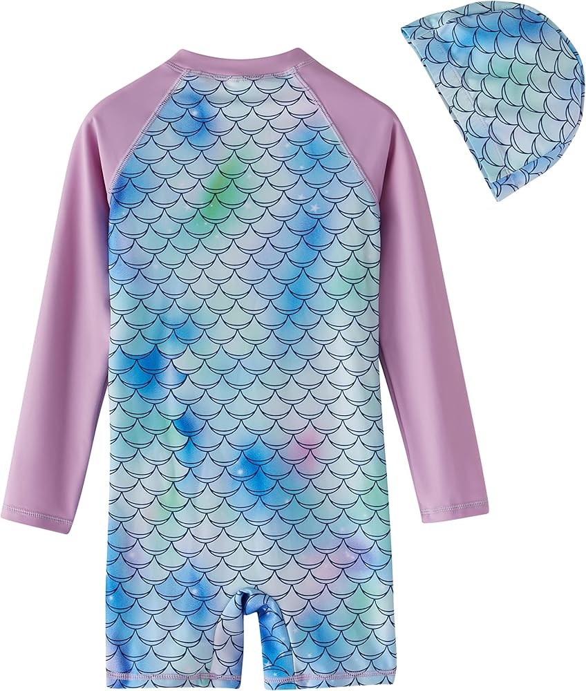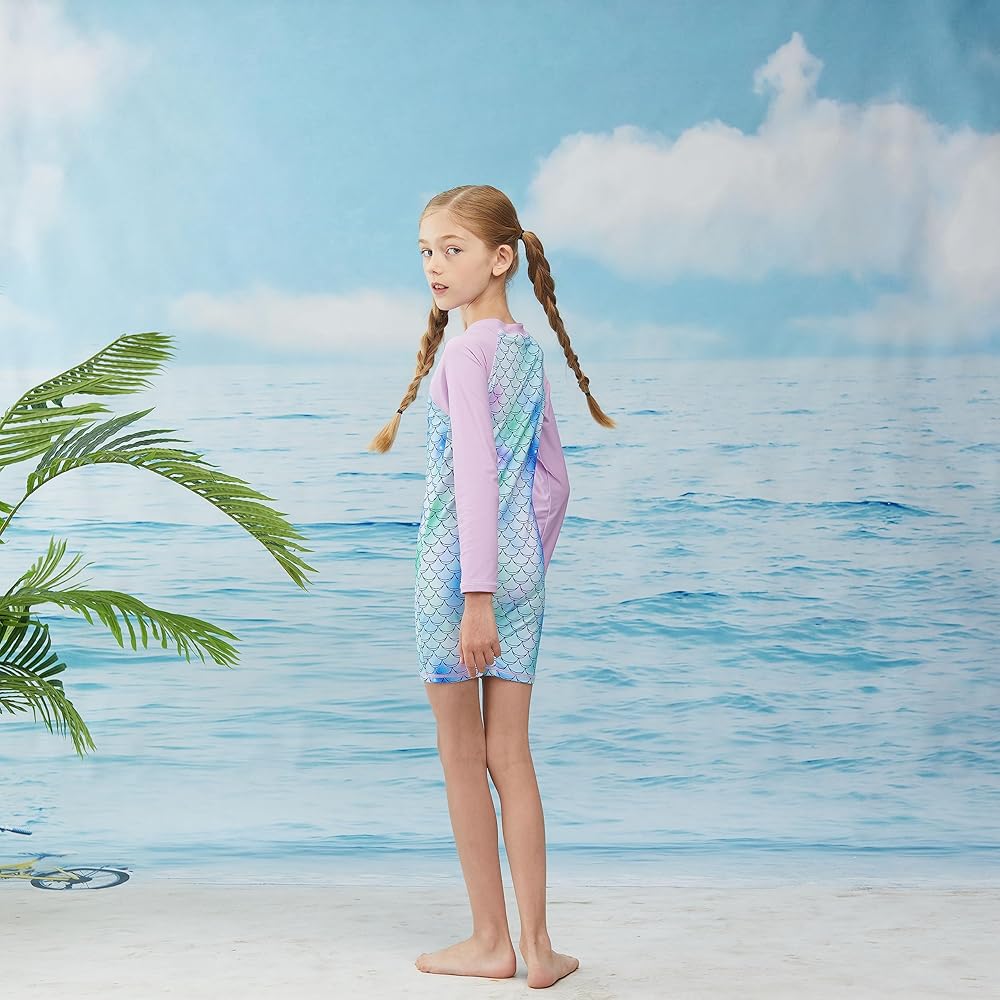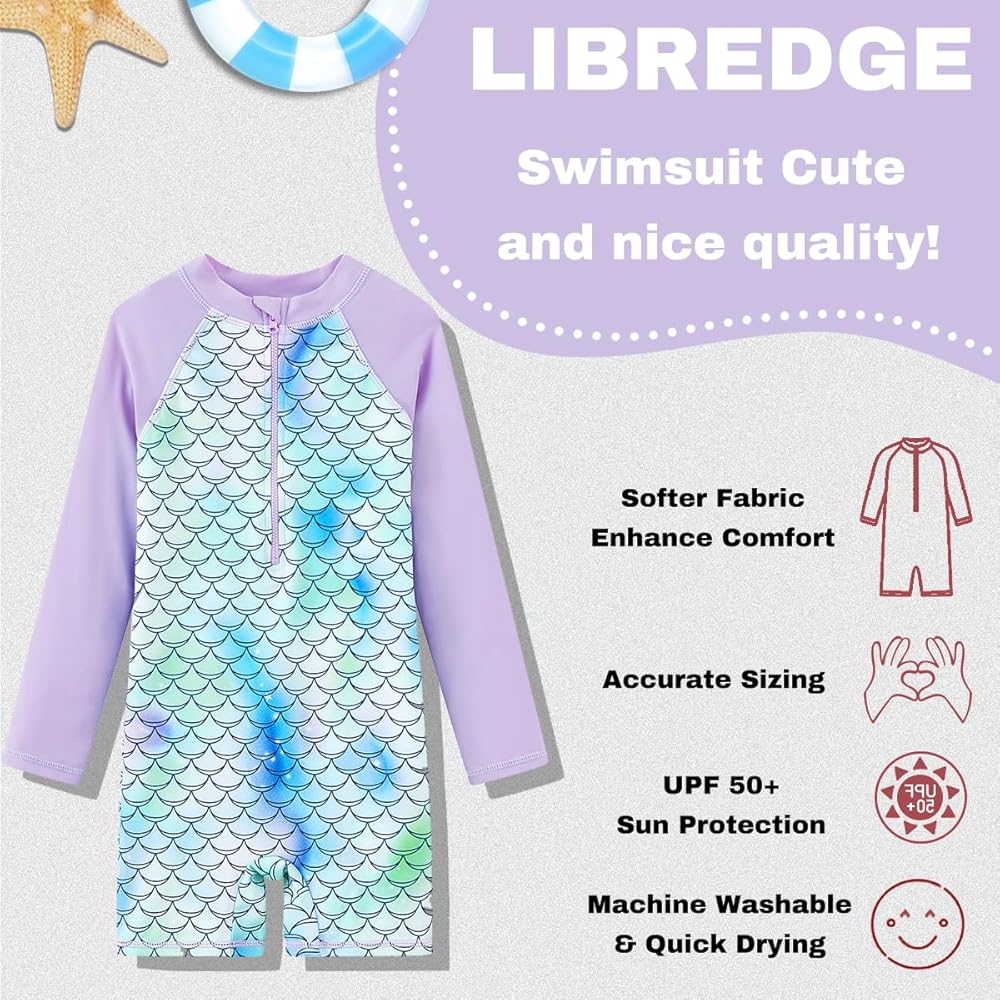 نسيج عالي الجودة: بدلة استحمام للفتيات بأكمام طويلة للحماية من الطفح الجلدي، مرنة لملاءمة مثالية، صديقة للبشرة، سريعة الجفاف، مسامية، مريحة وناعمة، سهلة التنظيف ومقاومة للبقع.