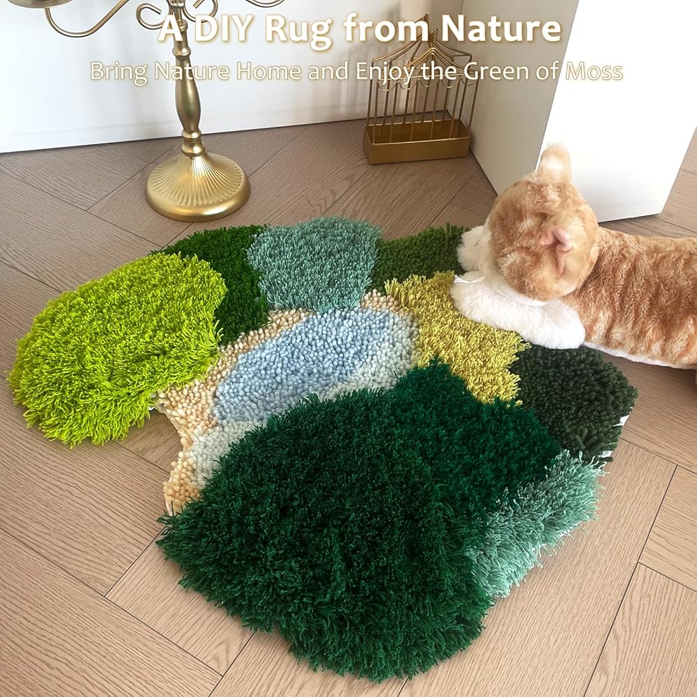 [Layered 3D Effect, Soft to Step On] Crafted with pre-cut yarns in three lengths, the finished rug mimics the layered look of real moss—visually rich and wonderfully soft underfoot. Don't worry about the variety—just loop, hook, and watch your rug bloom. Great for beginners, with clear instructions to guide you through.