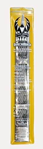 Choose Fine, Medium or Aggressive. This rasp will not clog and doesn't dull quickly. You can trim a lot more horses than the average rasp, which saves you money. Just replace the refill when needed, keep the frame. Patented design cuts quicker & easier which limits wear & tear on your body. This rasp was designed by a farrier with decades of experience. He was frustrated with how quickly traditional rasps had to be replaced and how inefficient they were. The Dymondback proved his job can be easier, quicker and more profitable. Includes: Frame and Refill. HANDLE NOT INCLUDED To purchase, search ID# B0BMT4M66D . Optional End Cap is available for added hand protection. To purchase, search # B0BVMNG7YQ . Made with high quality steel. Used rasps are not returnable. Made in the USA. Call us at 203-746-8055 with any questions! Dimensions: 18-1/2" X 2-1/4 X 3/8" Cutting Surface: 14" x 2"