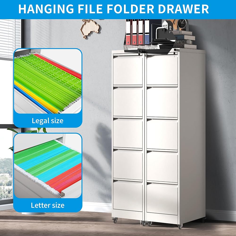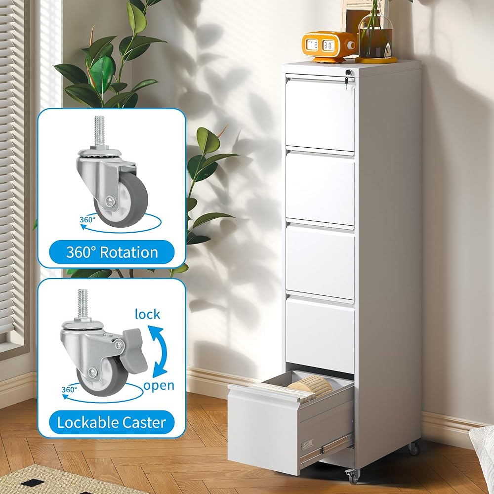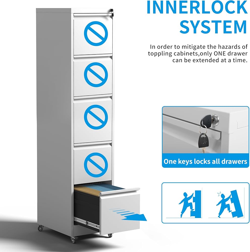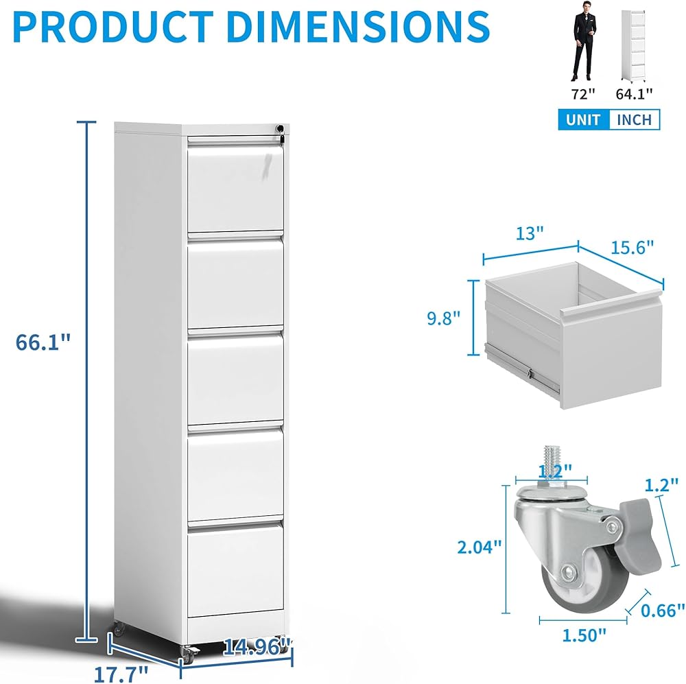 【لتوفير الفضاء ومتعدد الاستخدامات】 تم تصميم خزانة الملفات الرأسية هذه لزيادة سعة التخزين إلى الحد الأقصى مع تقليل المساحة التي تحتلها. يتيح تصميمه المدمج أن يتناسب بسلاسة مع زوايا ضيقة أو مساحات ضيقة. قضيب تعليق قابل للتعديل في كل درج يناسب رسالتك A4 أو رسالتك أو المستندات القانونية.