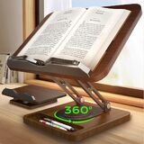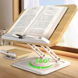 Book Stand for Reading ، حامل كتاب قابل للتعديل مع قواعد دوارة 360 درجة ، حامل كتاب Cookbook STANK مع مقاطع صفحة مرنة للمجلات والأجهزة اللوحية وأجهزة الكمبيوتر المحمولة