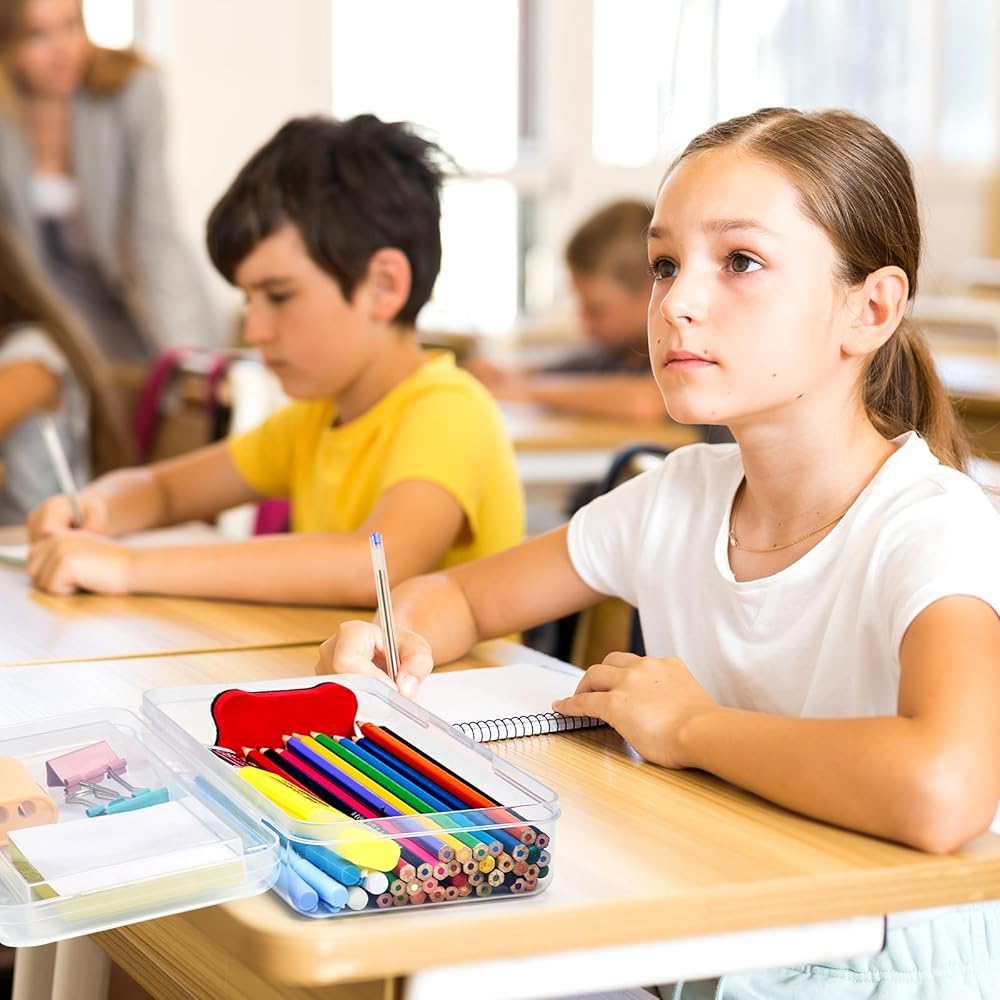 مربع الجودة: يحتوي صندوق القلم الرصاص على بناء قوي ، قوي ودائم لعقد مختلف اللوازم المدرسية. تبقي المزلاج على الغطاء ومرفقًا ويمكن الوصول إلى المحتويات بسهولة ، ويساعد الإغلاق الآمن على الحفاظ على العناصر المخزنة المحتوية بدقة