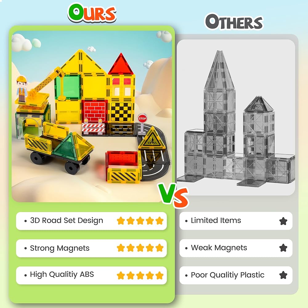 المغناطيس القوي - تستخدم البلاط المغناطيسي ذو الطابع الفضائي للأطفال مواد السلامة والمغناطيس المختومة بشكل آمن. جميع رواد الفضاء والصواريخ والكواكب جميعهم يتنقلون بشكل آمن إلى البلاط - لا يتذبذب الأطفال حيث يقوم الأطفال ببناء محطات فضائية عائمة ، وقواعد القمر ، وصواريخ بين النجوم.