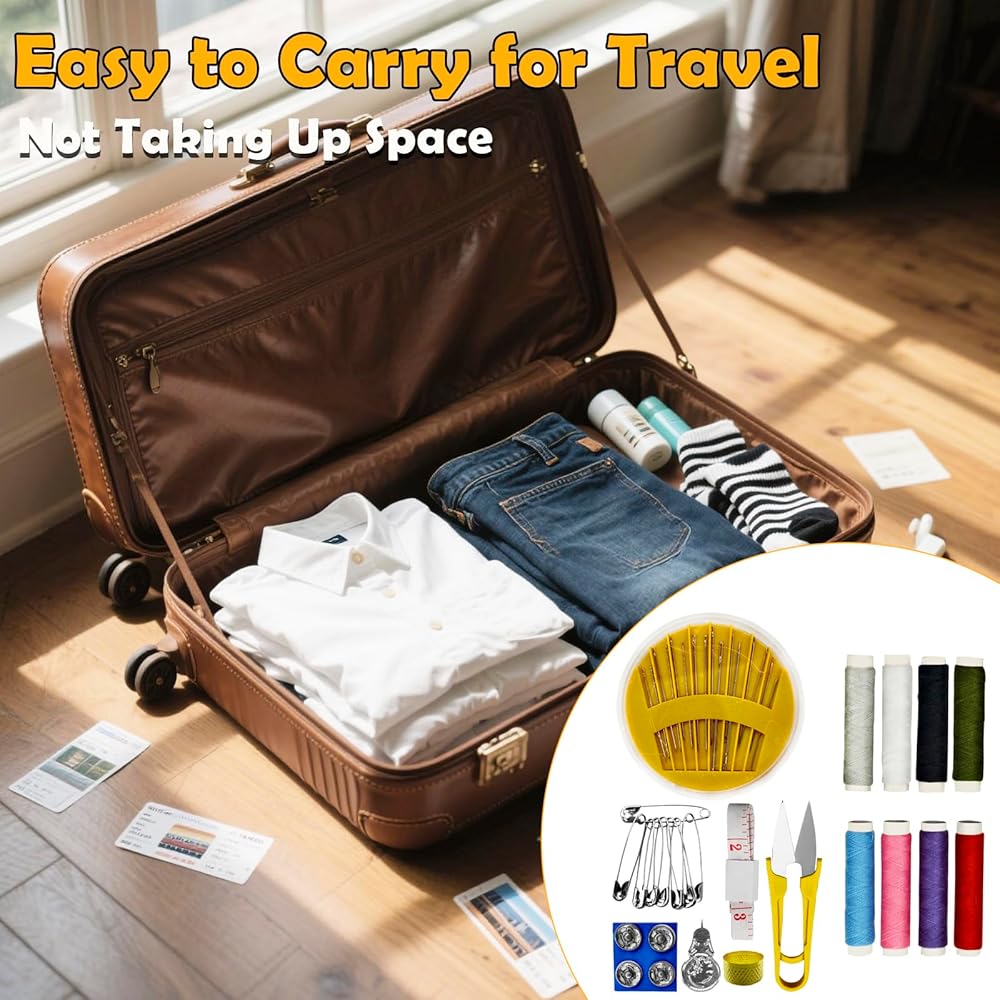 ✈️ Travel-Friendly & Portable – Lightweight and compact, this sewing set fits easily in your purse, backpack, or suitcase. Be prepared for wardrobe emergencies anytime, anywhere—perfect for vacations, business trips, or daily use! 🧵 Fu